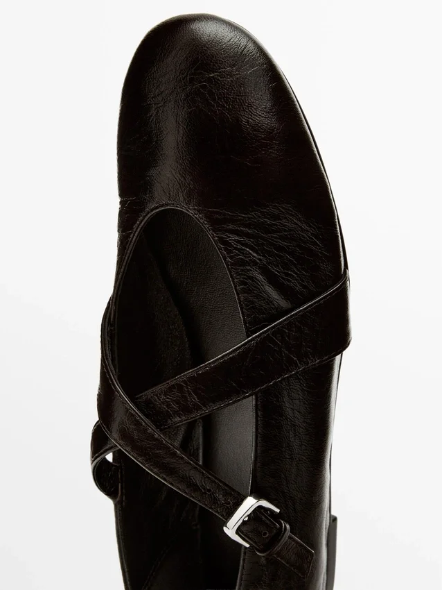 Ballerinas mit gekreuzten Riemen und Schnalle