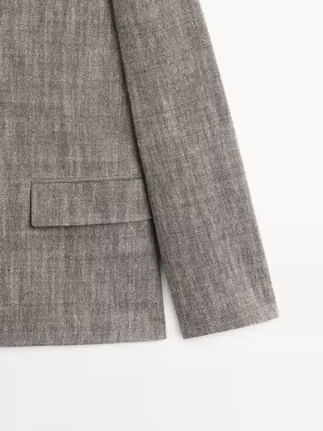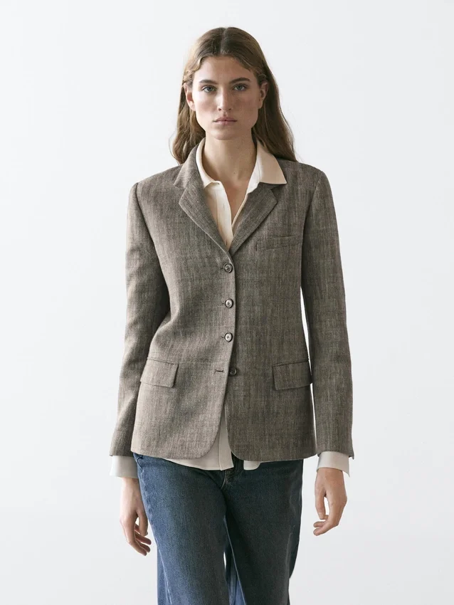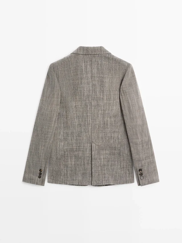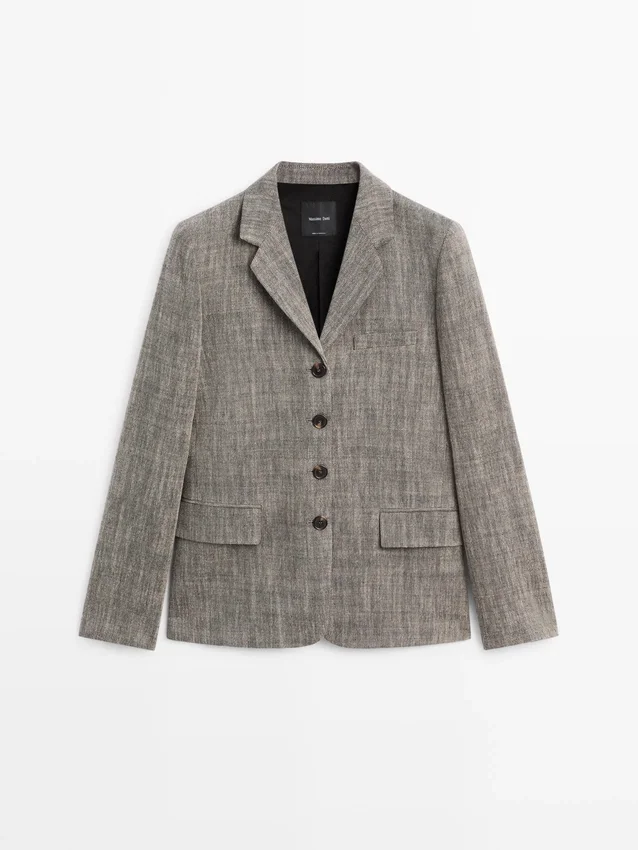 Blazer aus einem Wollmischgewebe. Reverskragen. Lange Ärmel mit geknöpften Manschetten. Vier-Knopf-Verschluss. Zwei Pattentaschen. Eingesetzte Leistentasche auf der Brust. Gefüttert.Materialzusammensetzung
