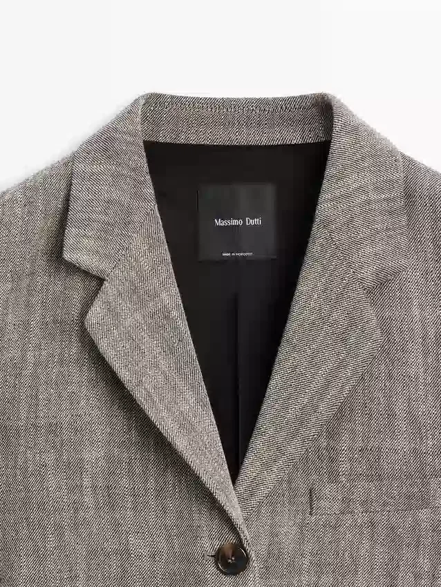 Wolle 60 %, Baumwolle 32 %, Leinen 8 %