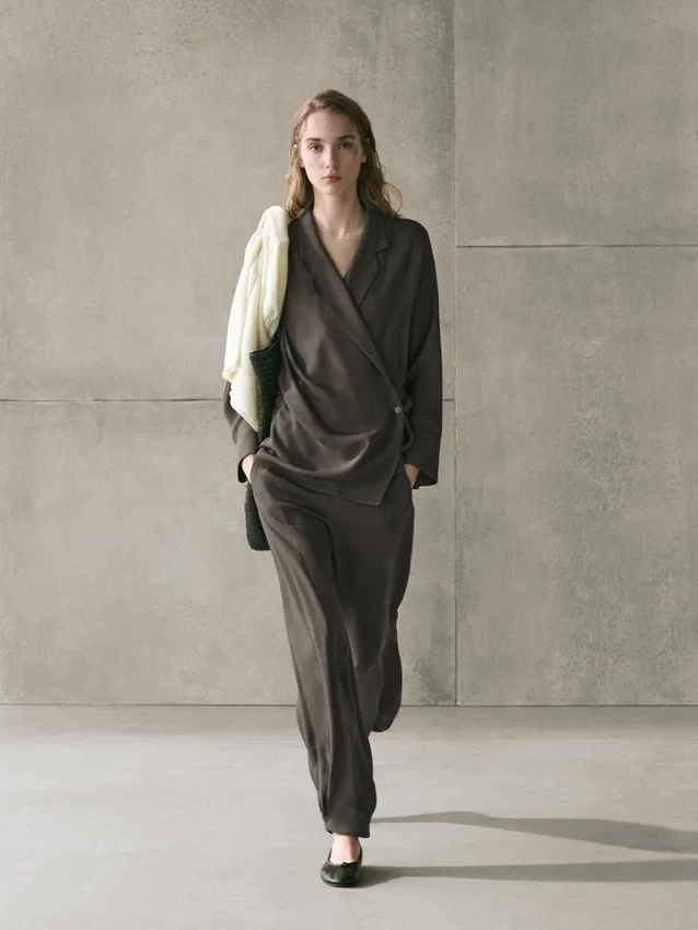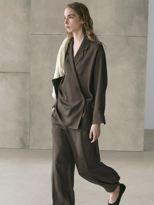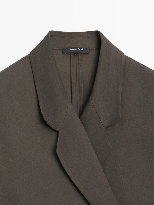 Overshirt aus leichtem Stoff. Reverskragen. Lange Ärmel mit geknöpften Manschetten. Wickelverschluss mit seitlichem Knopf. Passendes Kleidungsstück erhältlich.