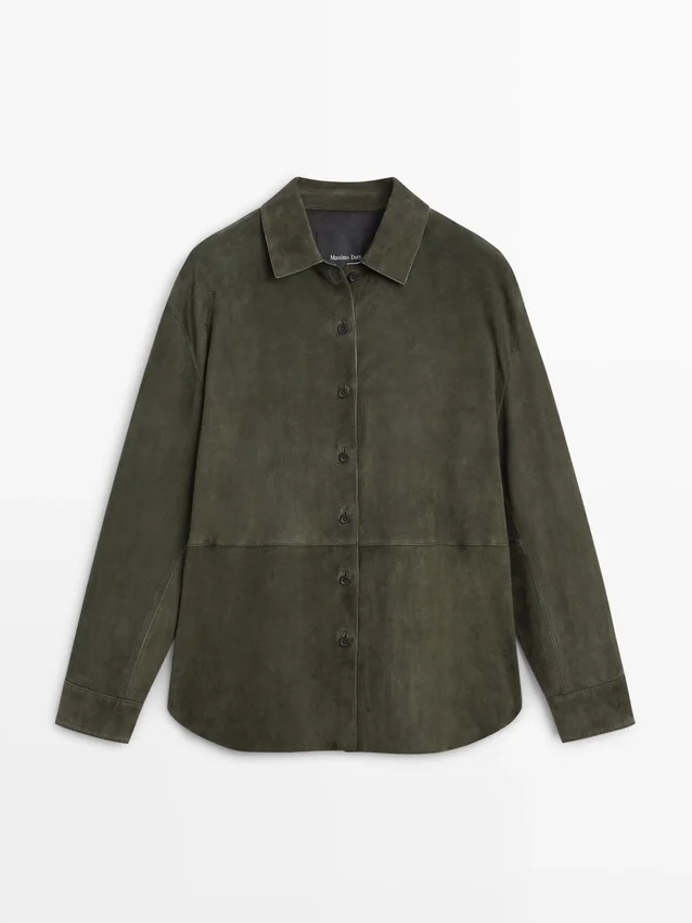 Hemden aus Ziegenleder mit Wildleder-Finish. Lange Ärmel mit geknöpften Manschetten. Hemdkragen. Durchgehende Knopfleiste. Nahtdetails.