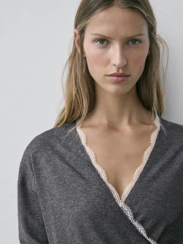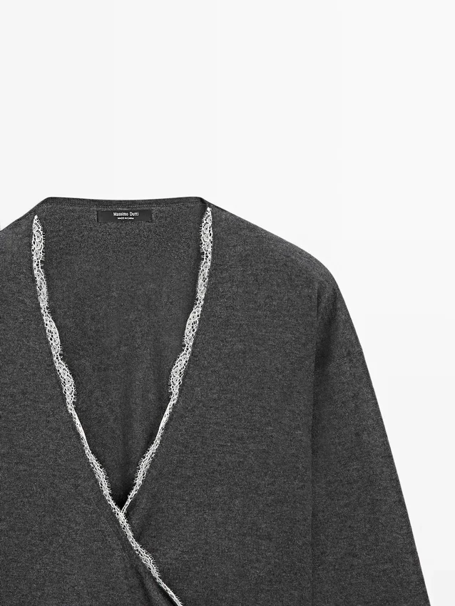 Cardigan aus Wollmischung. Lange Ärmel. Wickelverschluss mit Bindebändern.Materialzusammensetzung
