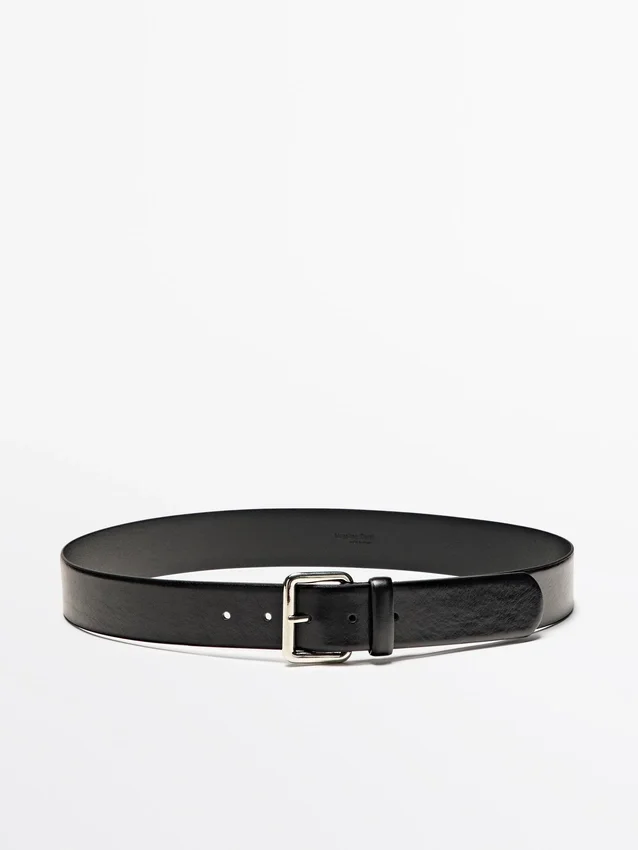 Gürtel aus Rindsleder mit Nappa-Finish. 4 cm breit. Quadratische Metallschnalle.