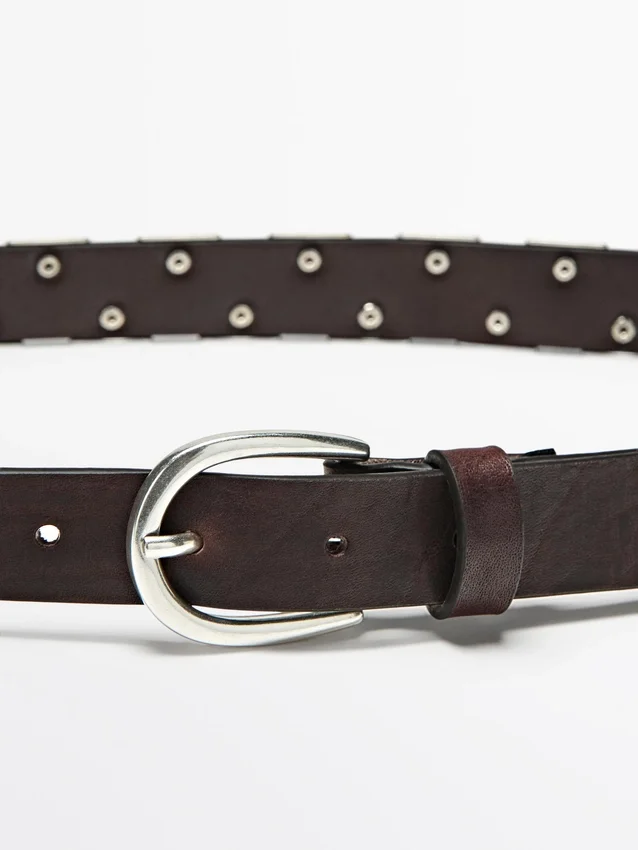 Gürtel aus 100 % Rindsleder. Metallapplikation.