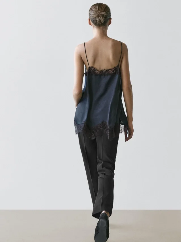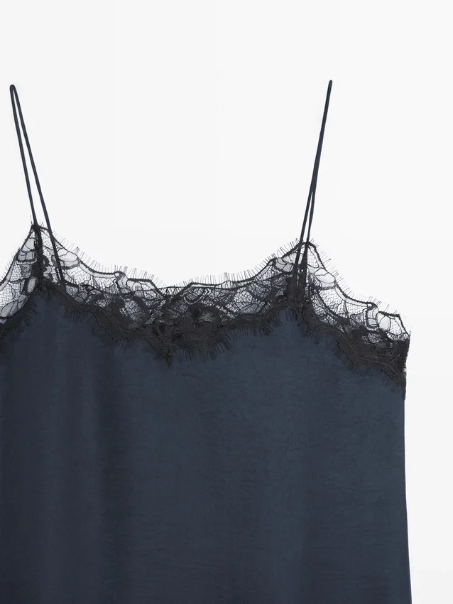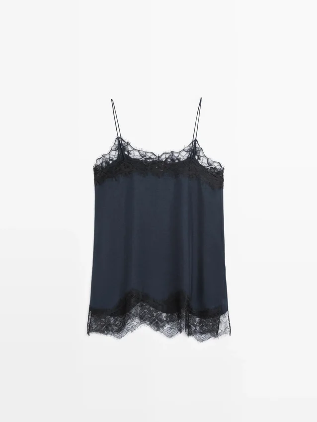Camisole-Top. Mit Trägern. Spitzenverzierung.