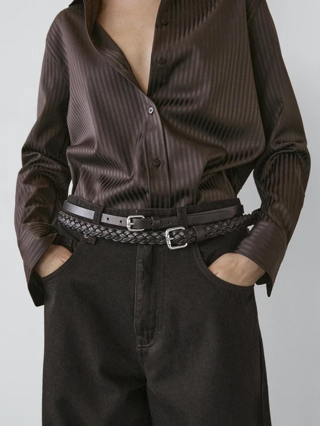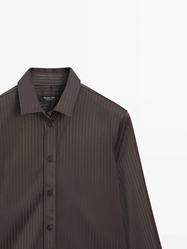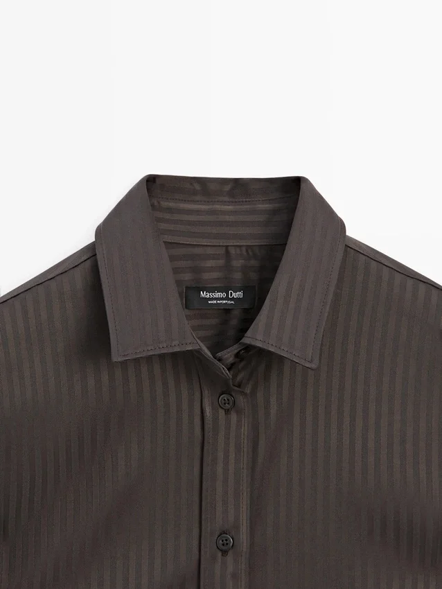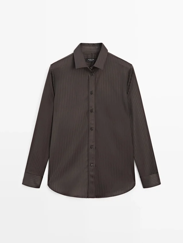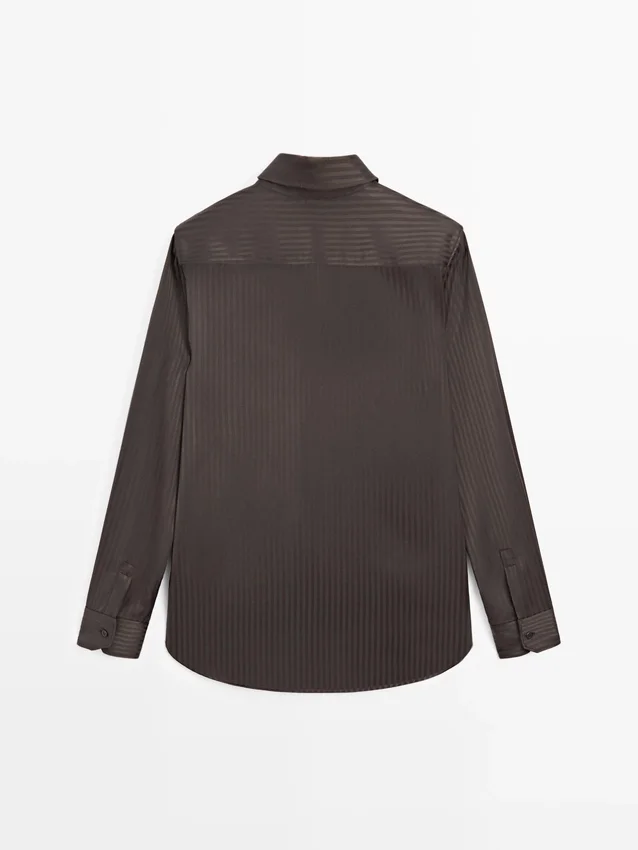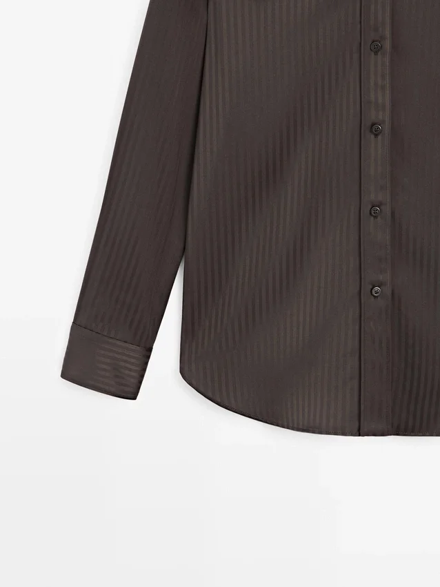 Fließendes Hemd. Lange Ärmel mit geknöpften Manschetten. Hemdkragen. Durchgehende Knopfleiste. Gestreiftes Detail.