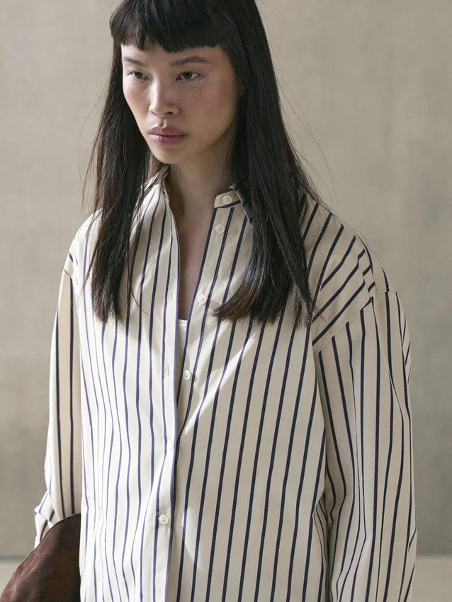 Hemd aus 100 % Baumwollstoff. Lange Ärmel mit geknöpften Manschetten. Hemdkragen. Knopfleiste vorne. Gestreifter Druck.