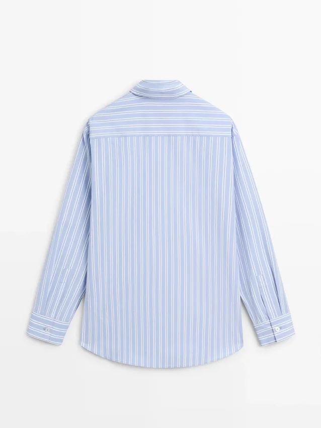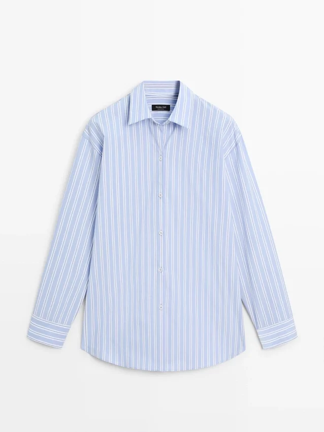 Hemd aus 100 % Baumwollstoff. Lange Ärmel mit geknöpften Manschetten. Hemdkragen. Knopfleiste vorne. Gestreifter Druck.