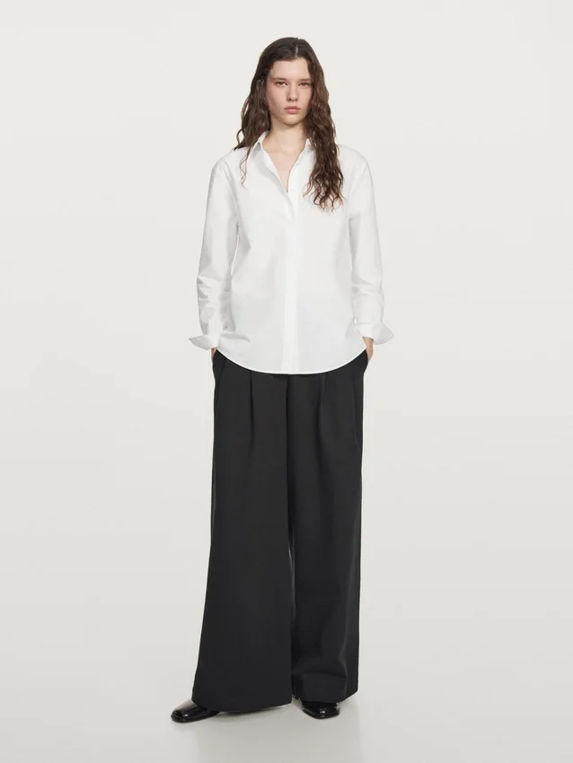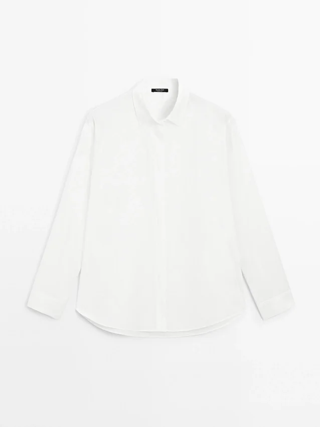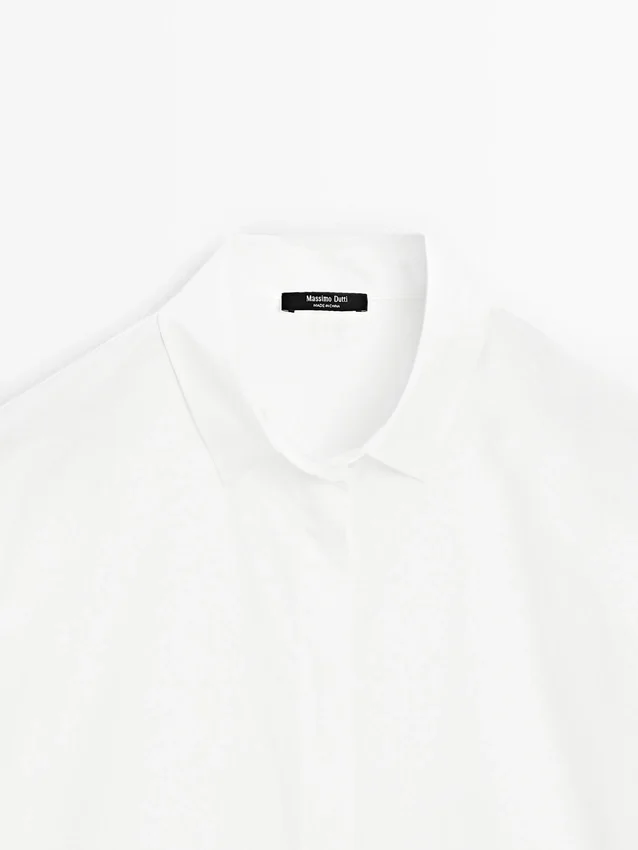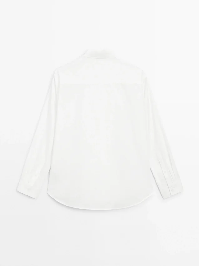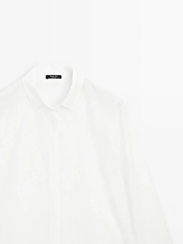 Hemd aus 100 % Baumwollstoff. Hemdkragen. Lange Ärmel. Knopfleiste auf der Vorderseite, verdeckt durch eine Knopfleiste.