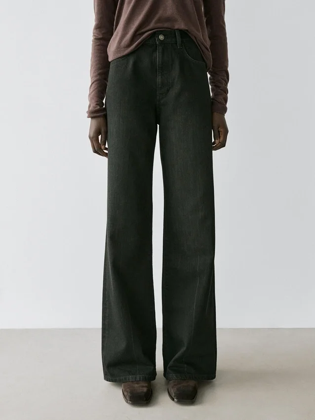 Jeans mit geradem Bein: Gerade Silhouette von der Taille bis zum Knöchel, ohne zusätzliche Passformanpassungen am Bein. Reißverschluss vorne und Knopfverschluss oben.