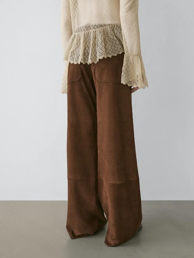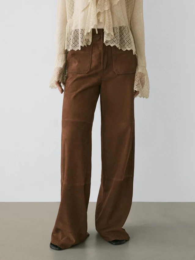 Weite Hose aus Wildleder mit Taschen