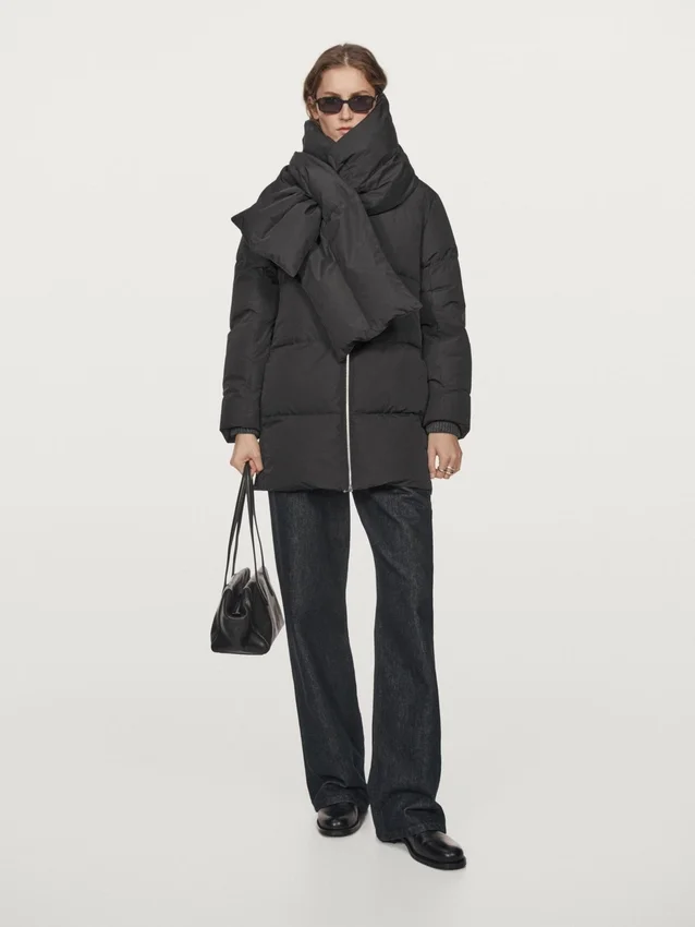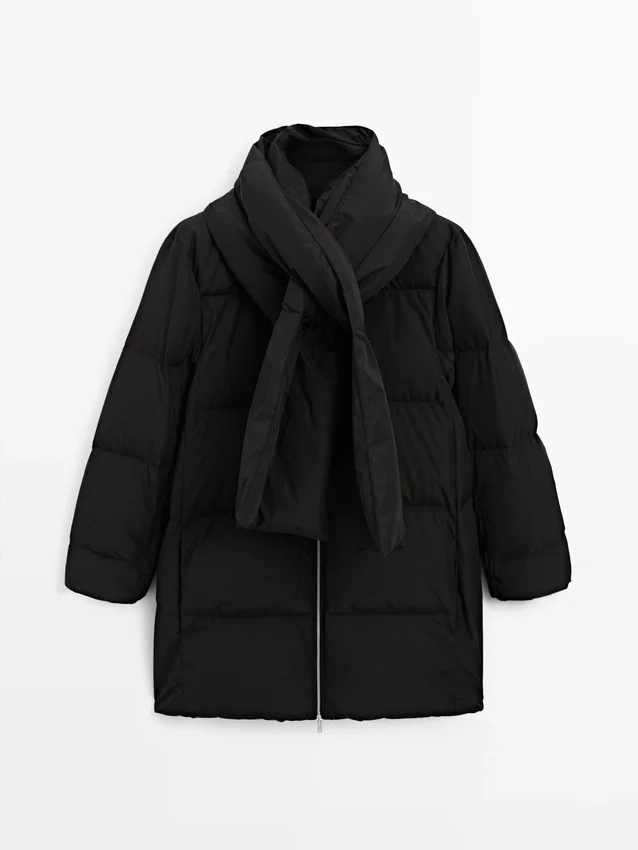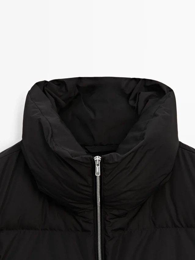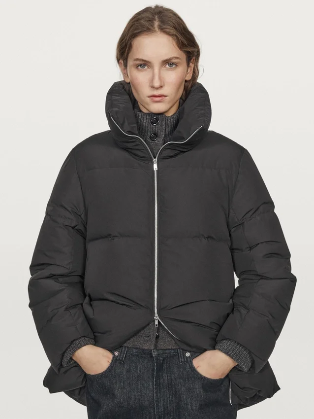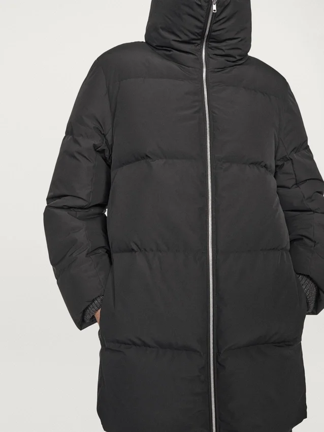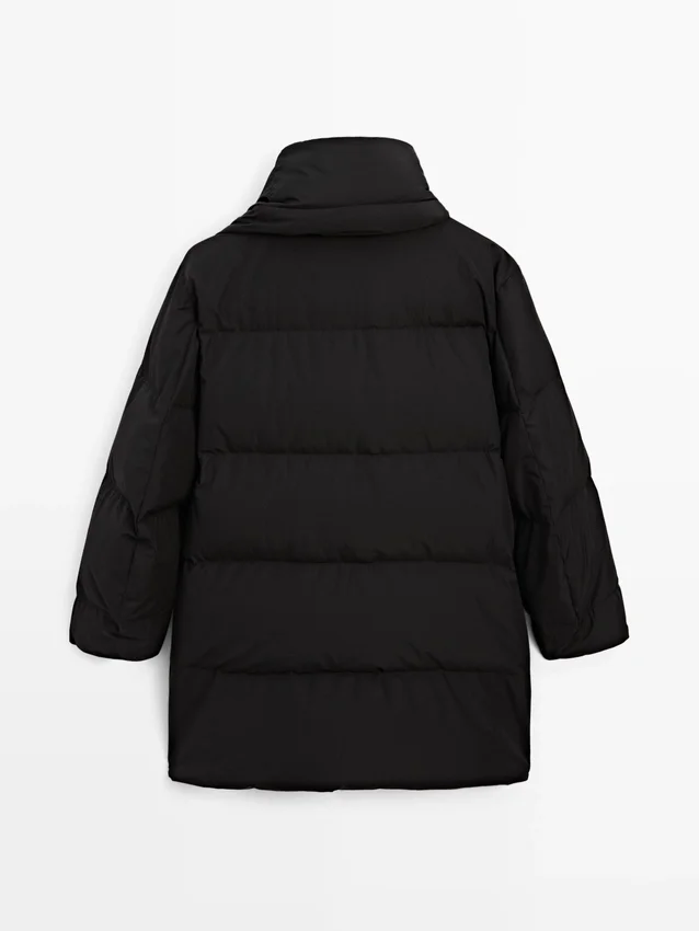 Steppjacke mit 80 % Daunen- und 20 % Federfüllung. Lange Ärmel. Mit Zwei-Wege-Reißverschluss. Hoher Kragen. Zwei Seitentaschen. Schals am Hals. Wasserabweisender Stoff.Materialzusammensetzung