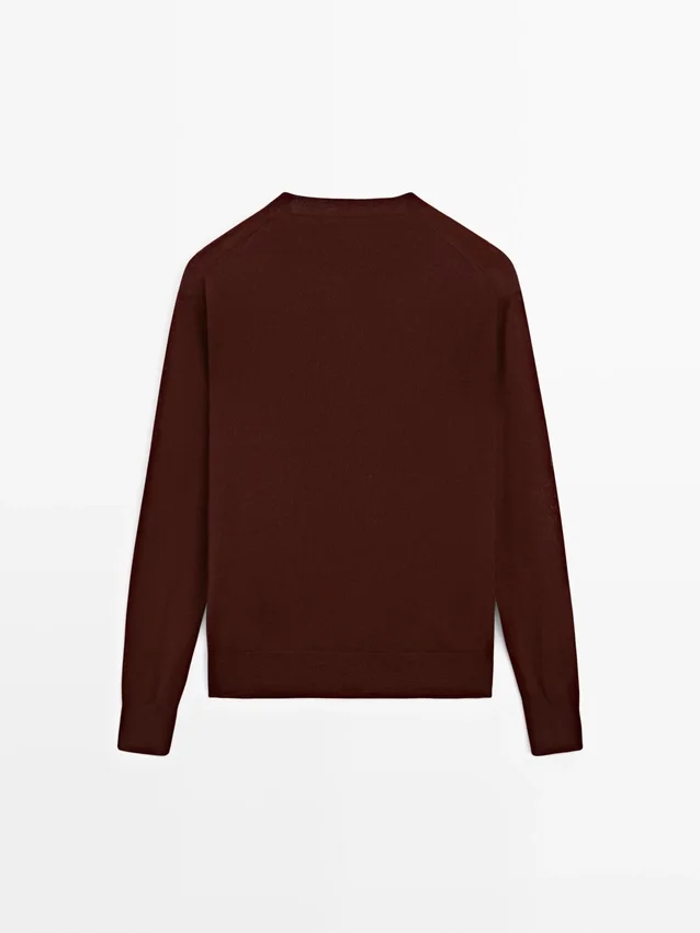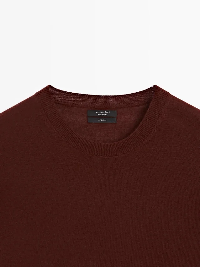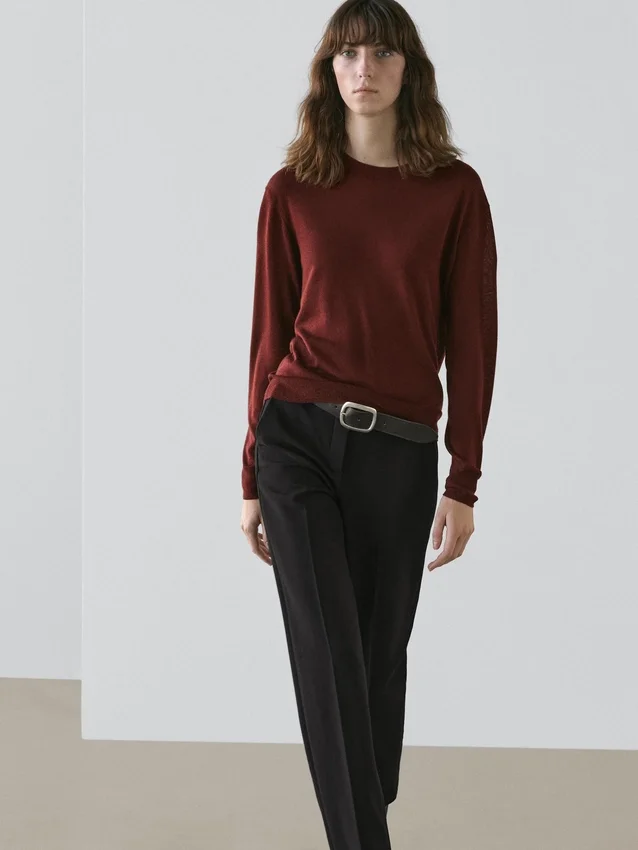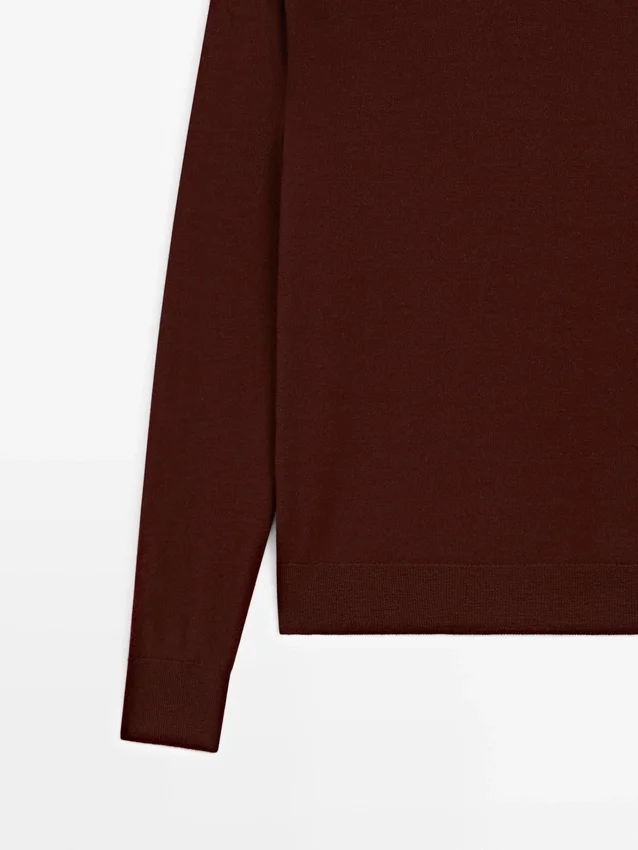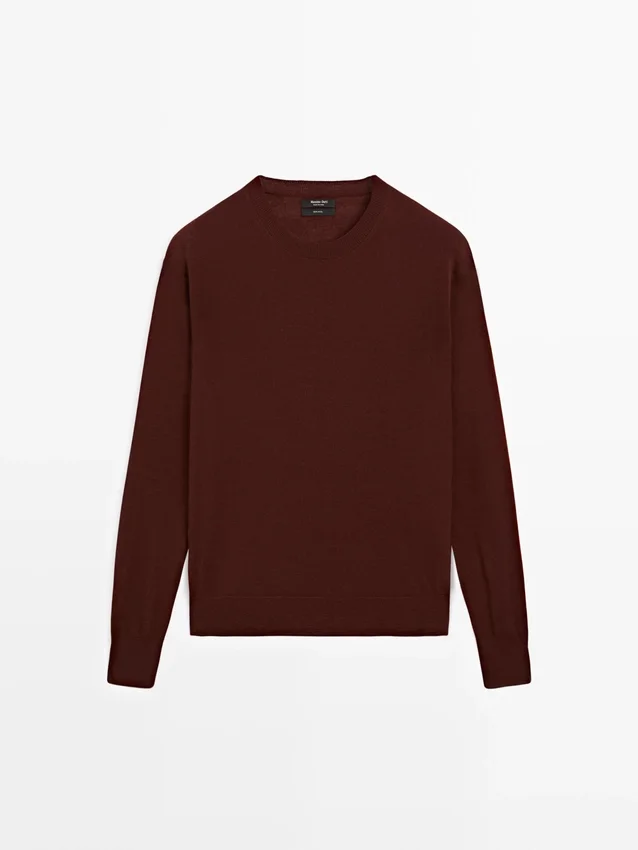 Feinstrick-Pullover aus Wollstoff. Rundhalsausschnitt. Lange Ärmel. Gerippte Bündchen.