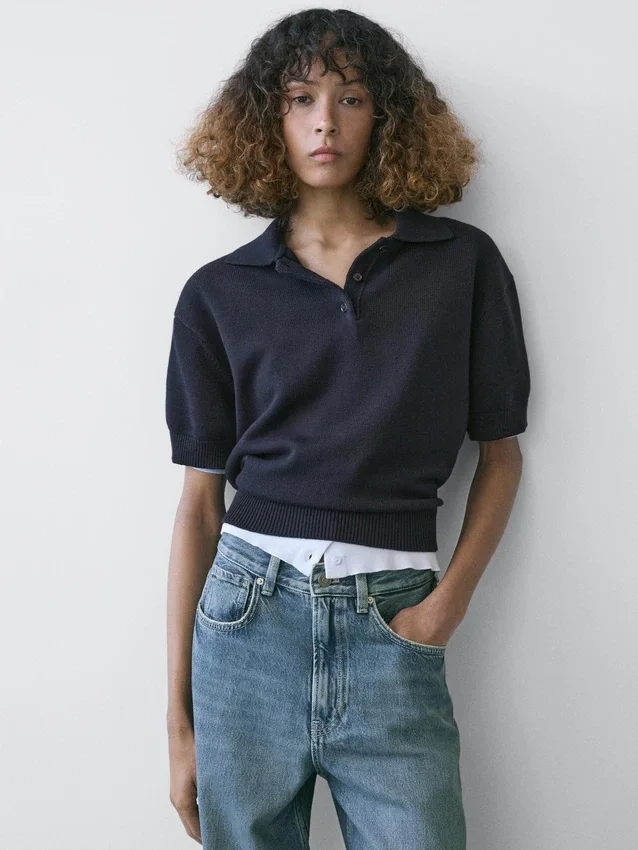 Poloshirts aus einem Baumwollmischgewebe. Kurze Ärmel. Polokragen mit Knopfverschluss. Gerippte Bündchen. Dieses Kleidungsstück ist kürzer als üblich.