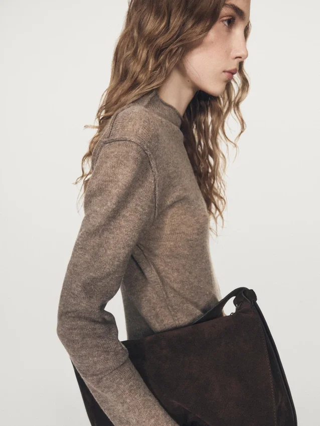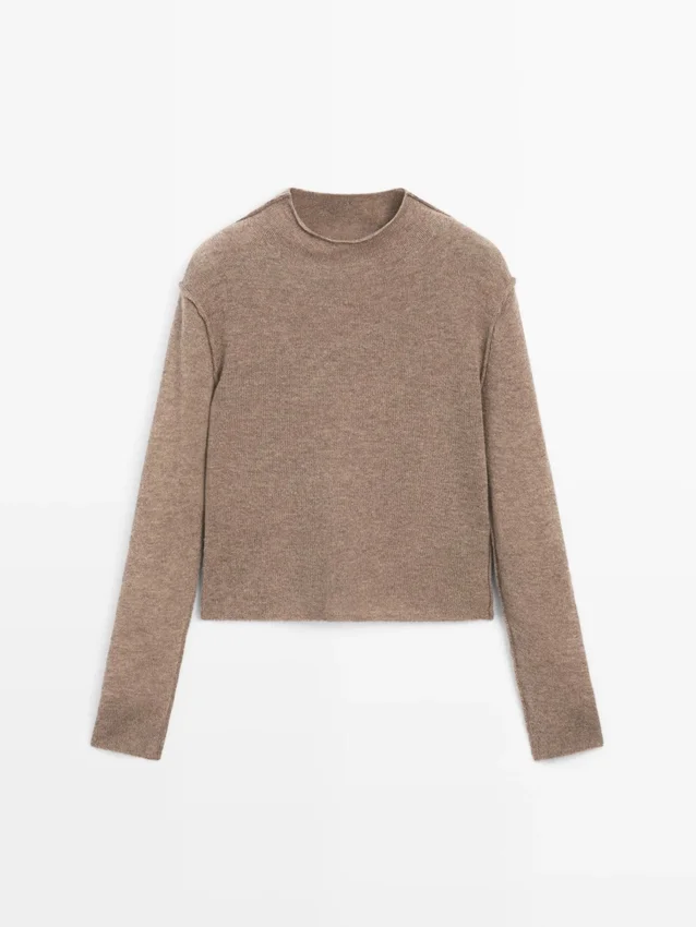 Strickpullover aus einem Wollmischgewebe. Rollkragen. Lange Ärmel. Nahtdetails.