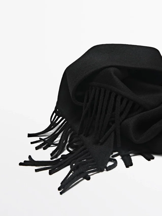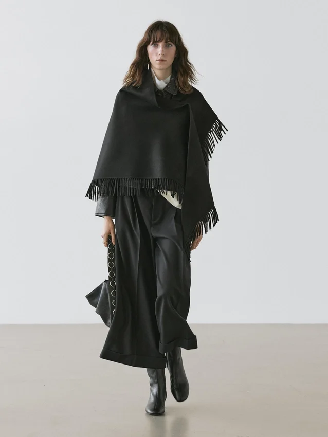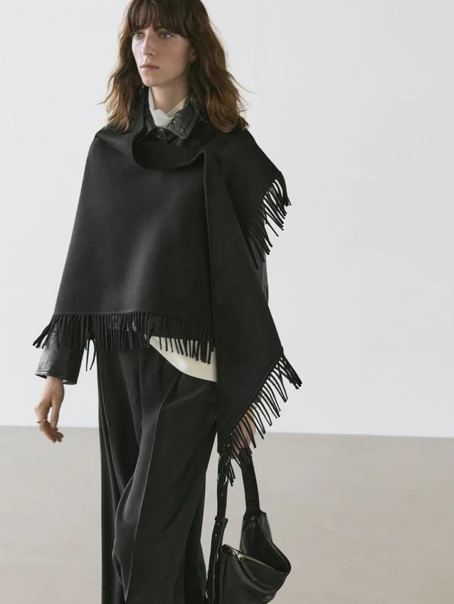 Cape mit Filzstruktur. Fransen-Detail. .