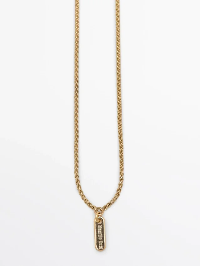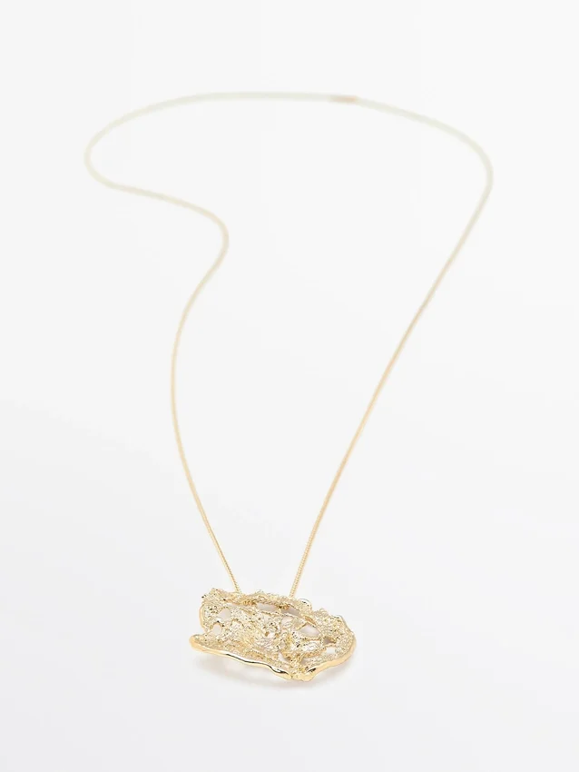 Kettenhalskette. Abstraktes Metallstück. Karabinerverschluss.