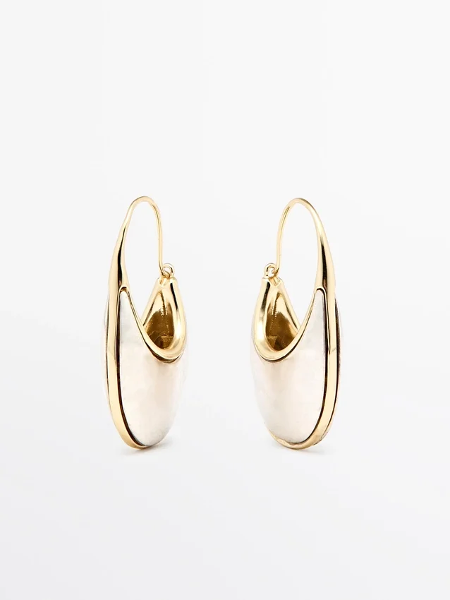 Creolen. Kombinierte Oberfläche in Gold- und Silbertönen.