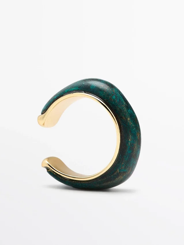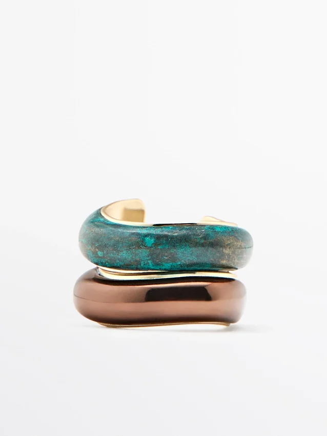 Set aus zwei Ringen, einer mit farbigem Emaille und der andere mit Metallic-Finish.