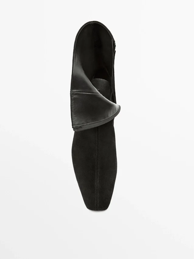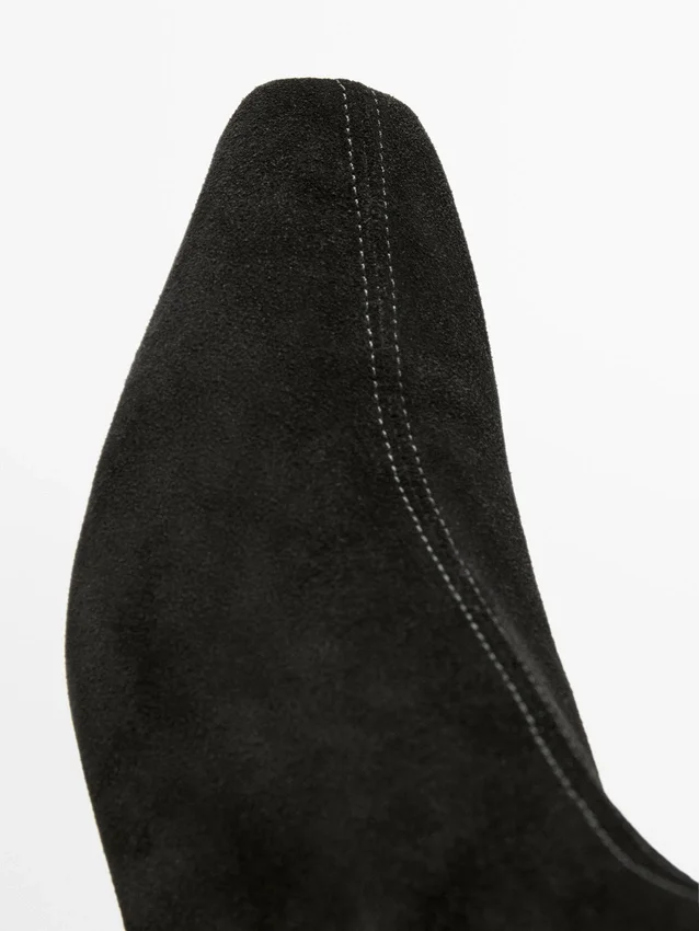Aus Rindsleder mit Wildleder-Finish. Weiches Leder. Keilabsatz. Reißverschluss an der Seite. Schaftlänge: 11 cm. Schaftweite: 27 cm. Absatz: 3 cm.