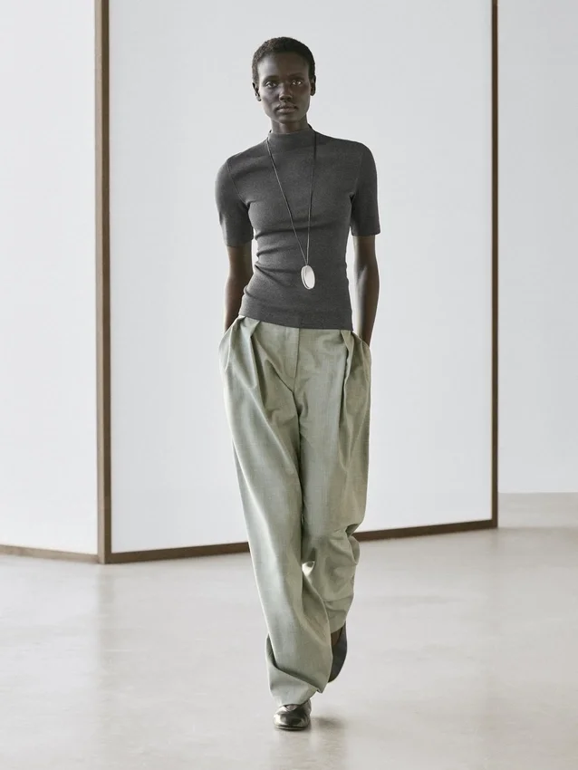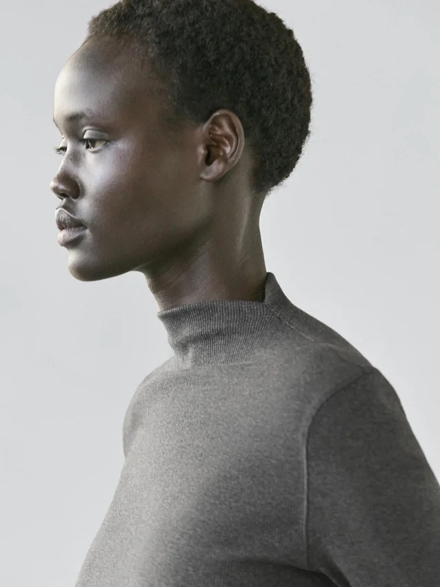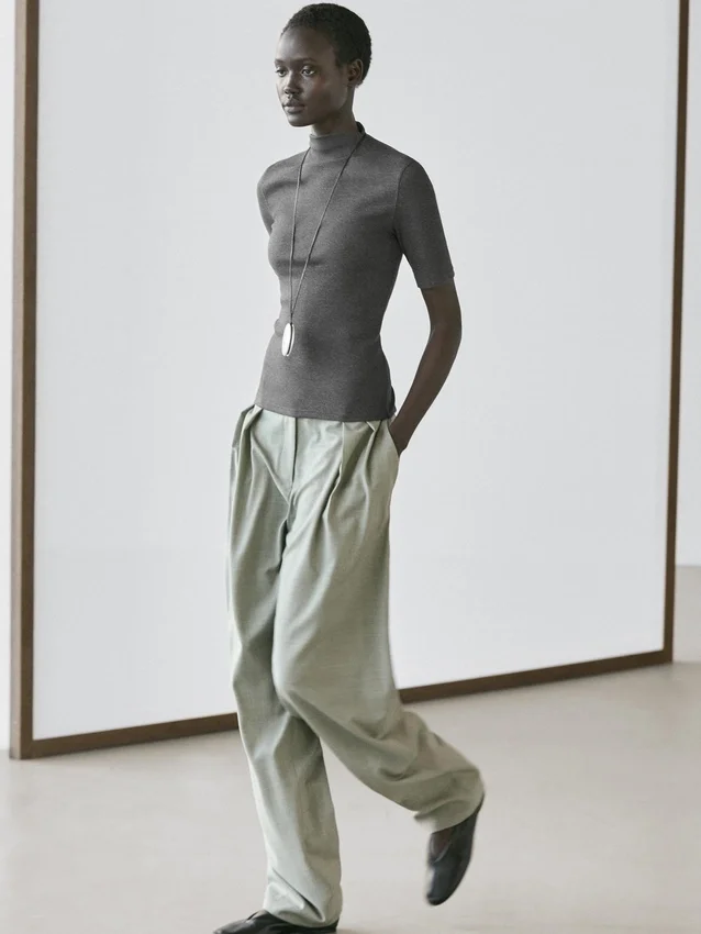 T-Shirt aus Baumwollmischung. Rollkragen. Kurze Ärmel. Gerippte Bündchen.