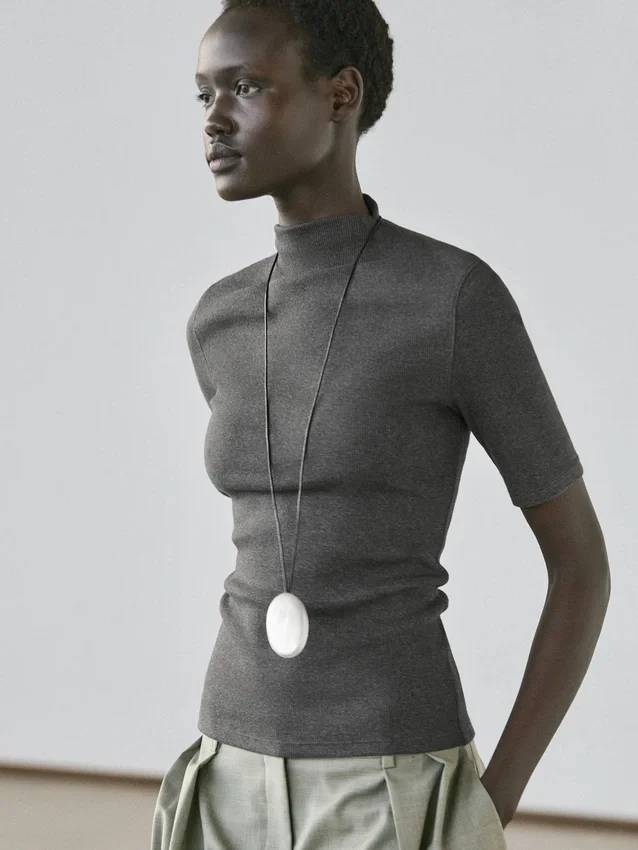 T-Shirts aus Baumwollmischung. Rollkragen. Kurze Ärmel. Gerippte Säume.