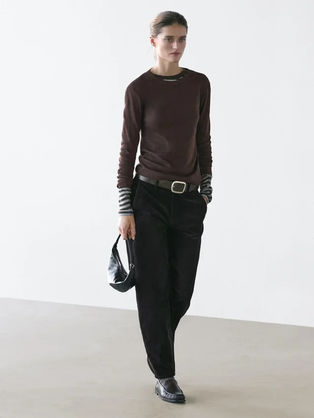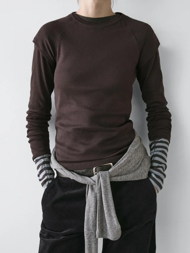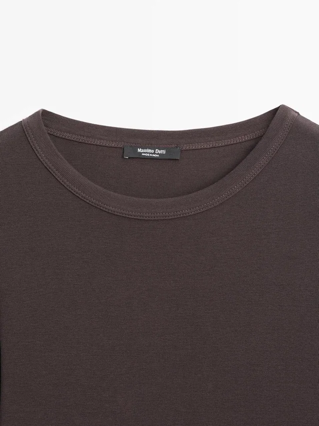 T-Shirt aus Baumwolle. Leicht taillierte Silhouette für eine definiertere und schlanke Optik. Rundhalsausschnitt. Lange Ärmel.