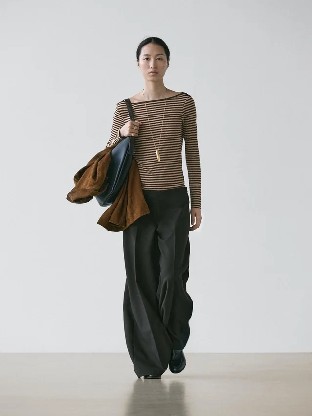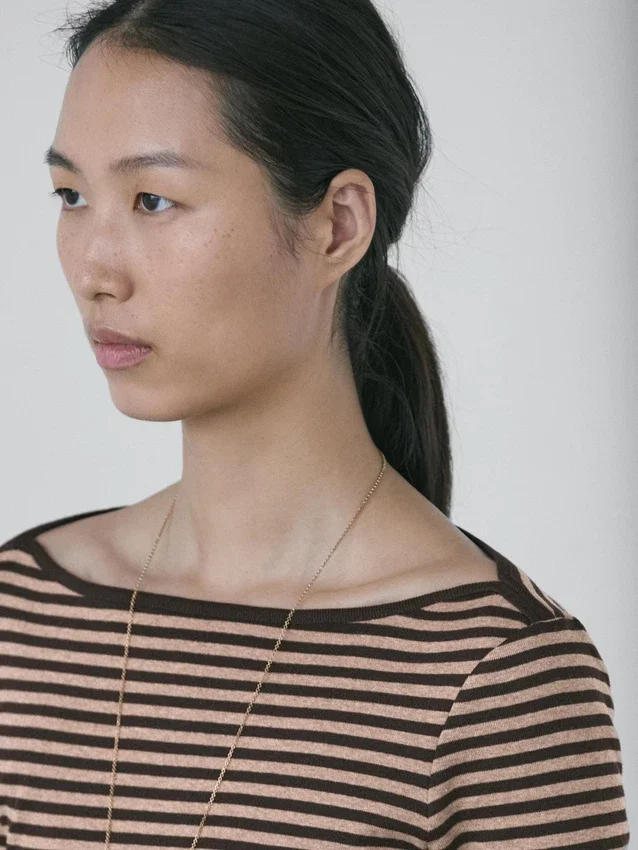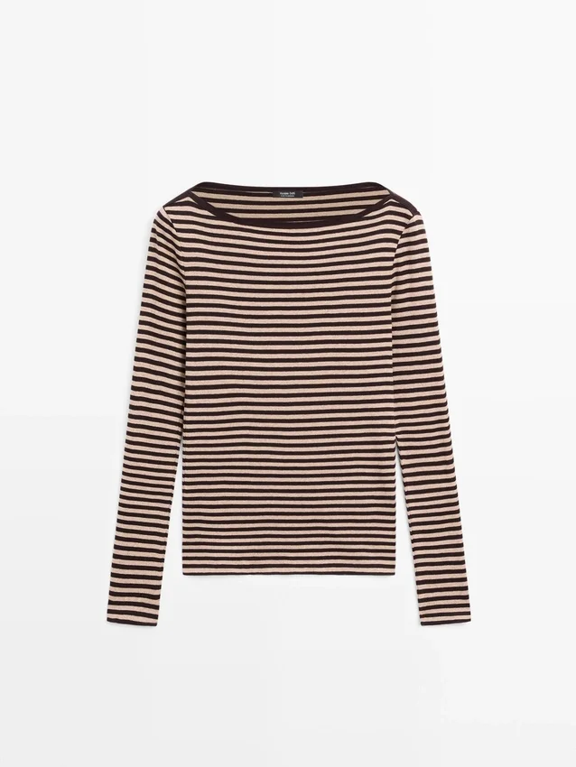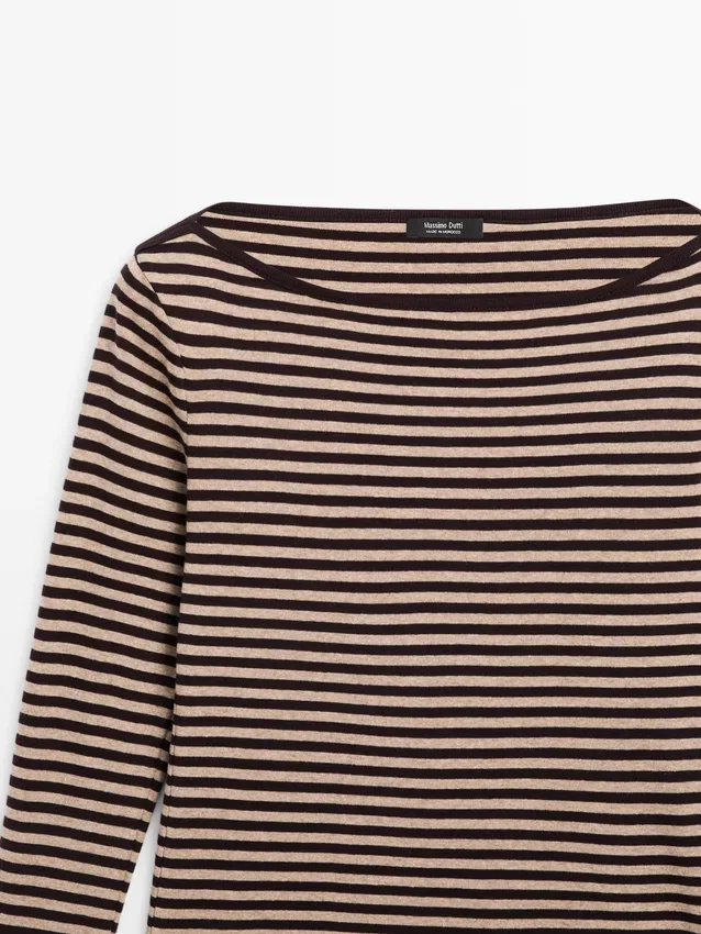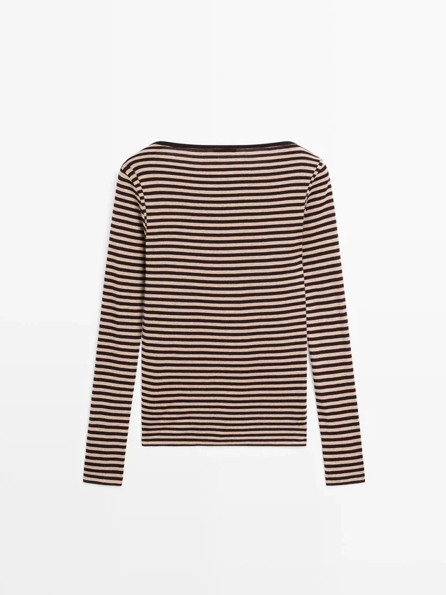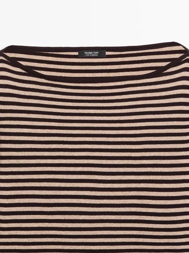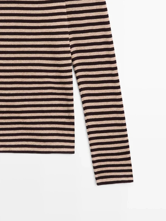 T-Shirt aus Baumwolle. Rundhalsausschnitt. Lange Ärmel. Gestreifter Aufdruck.