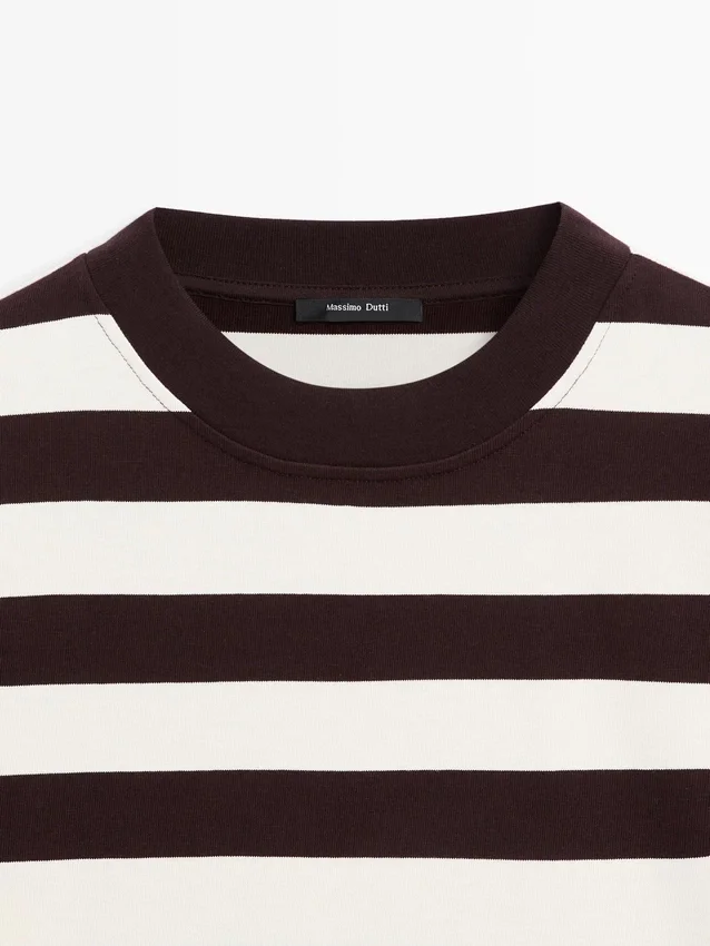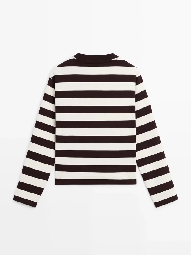 T-Shirt aus Baumwolle. Rundhalsausschnitt. Lange Ärmel. Gestreiftes Detail.