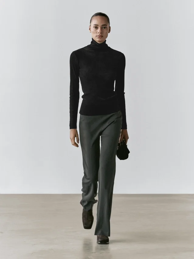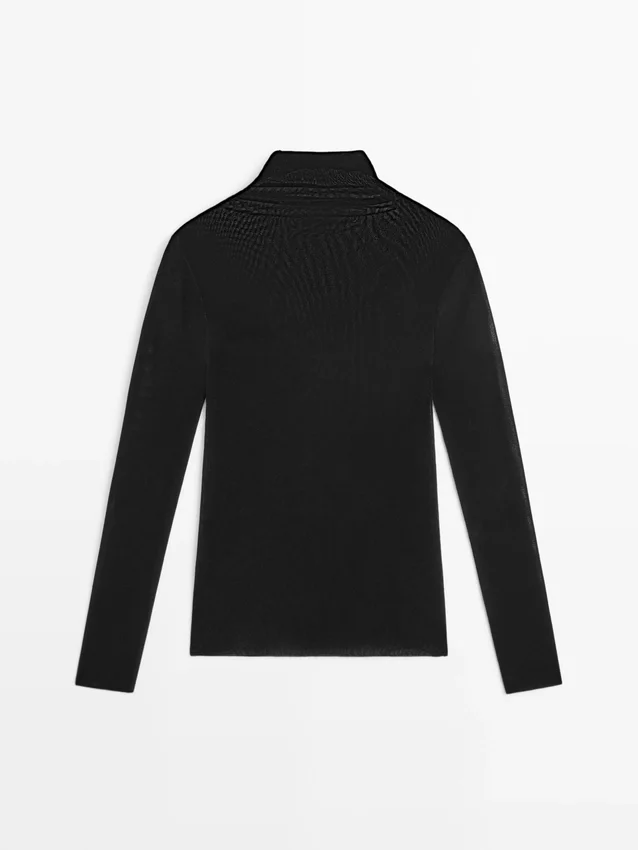 Langarm-T-Shirt. Hoher Kragen. Feinstrick. Weiches und samtiges Finish.