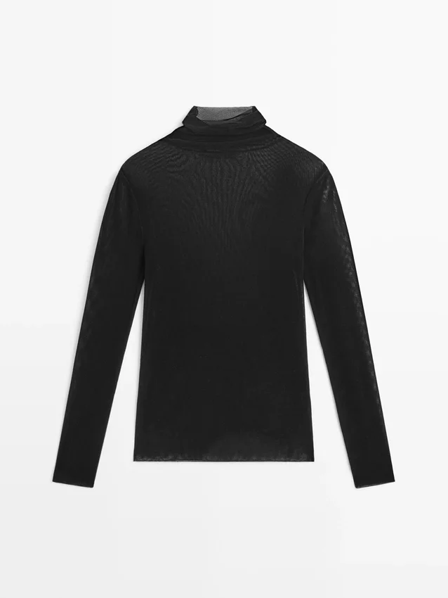 Halbtransparentes Langarm-T-Shirt