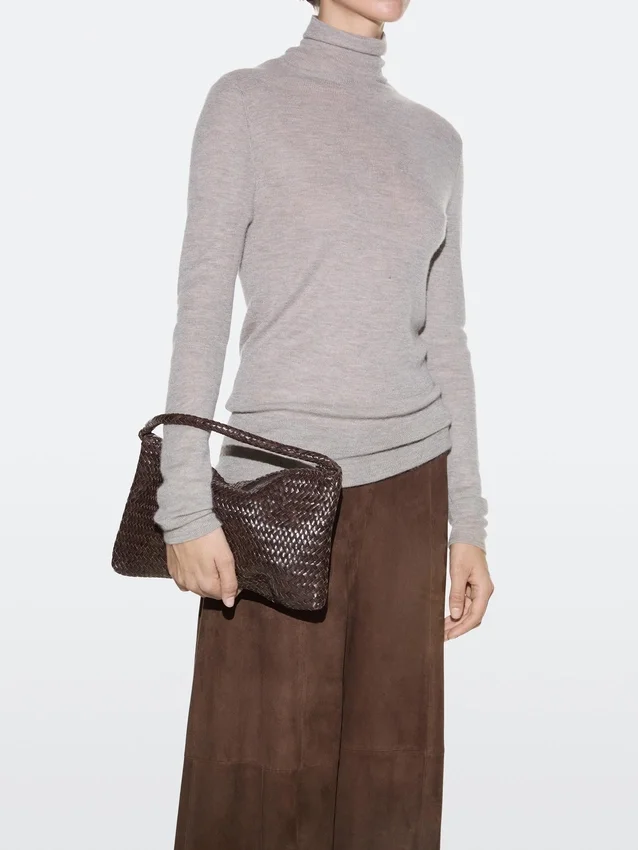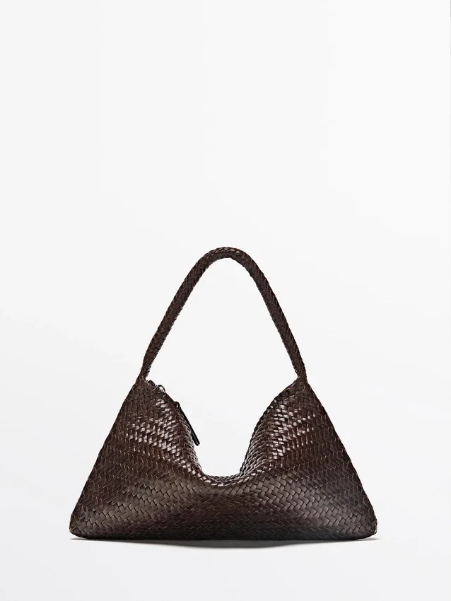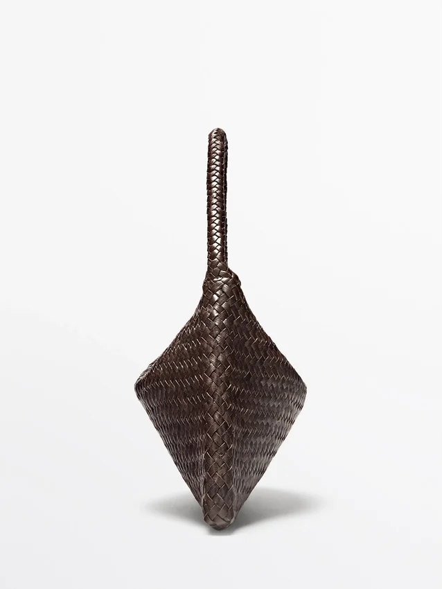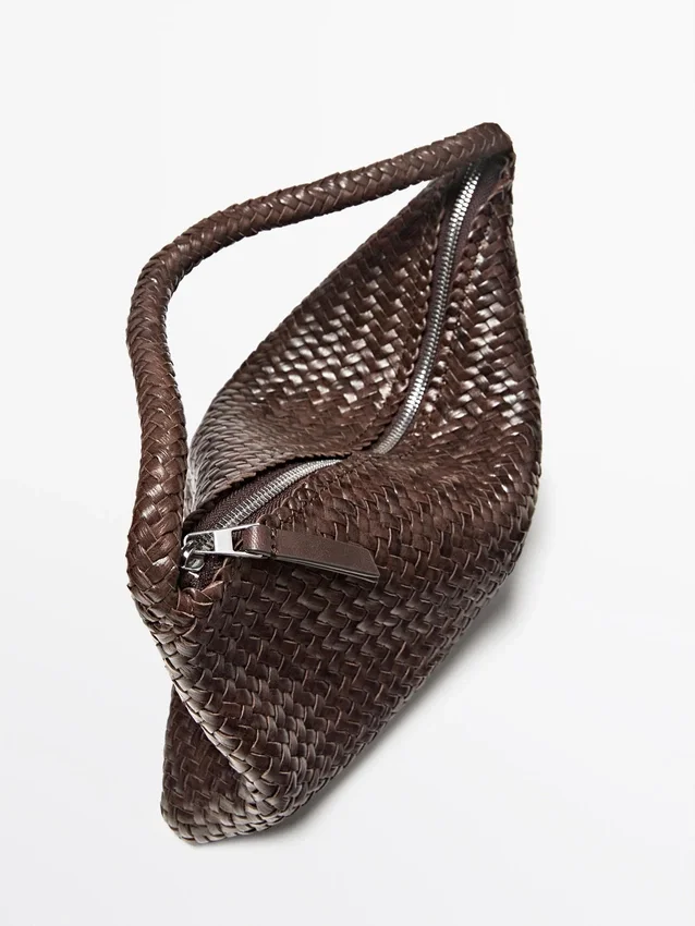 Handtasche aus Rindsleder mit Nappa-Finish. Reißverschluss. Handschlaufe. Baumwollfutter. Geflochtene Details.