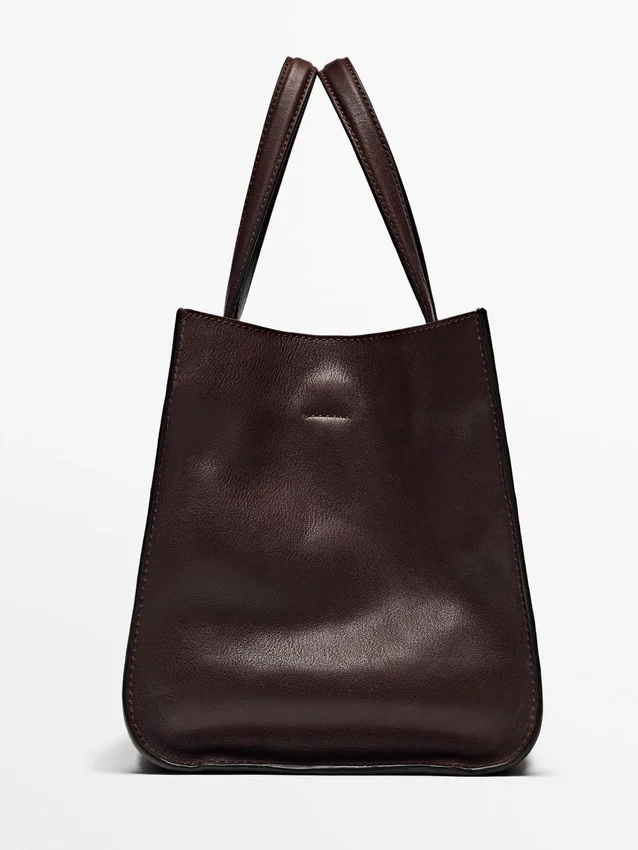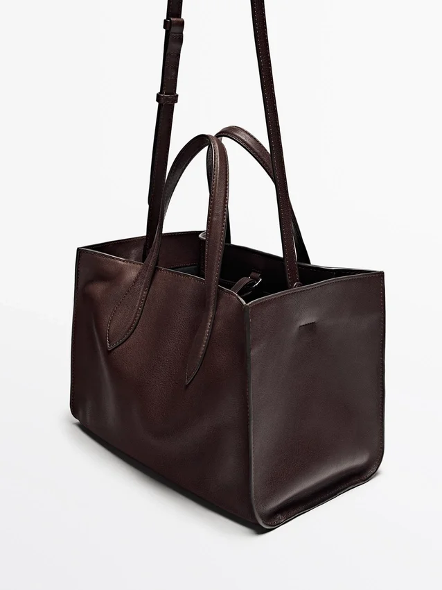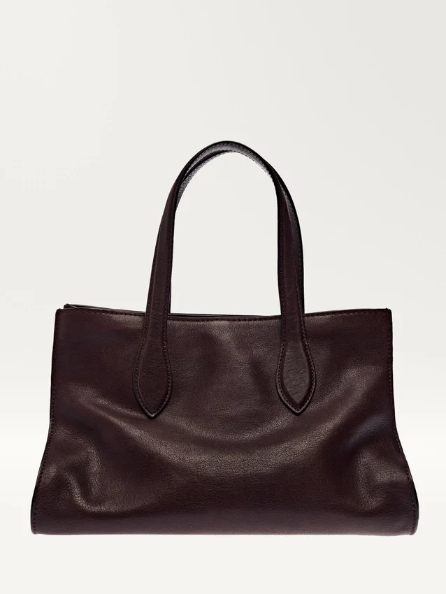 Tote-Tasche aus Rindsleder mit Nappa-Finish. Verstellbarer Crossbody-Gurt. Zwei Griffe und Schulterriemen. Verschluss mit Lederriemen und Metallschlaufe. Hauptfach. Baumwollfutter. Griffloch: 13 cm.