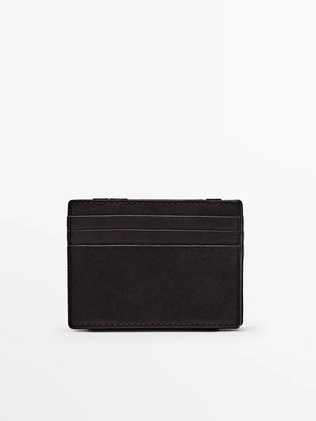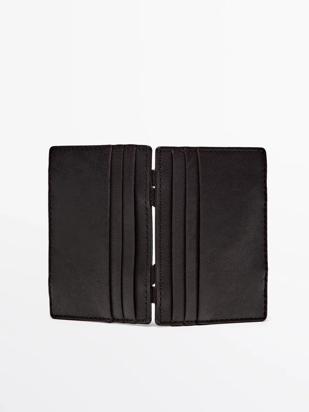 Querformat-Brieftasche aus Rindsleder mit Nappaleder-Finish. Mehrere Kartenfächer. „Magic Wallet“-Verschluss. Dieser Artikel ist individualisierbar.
