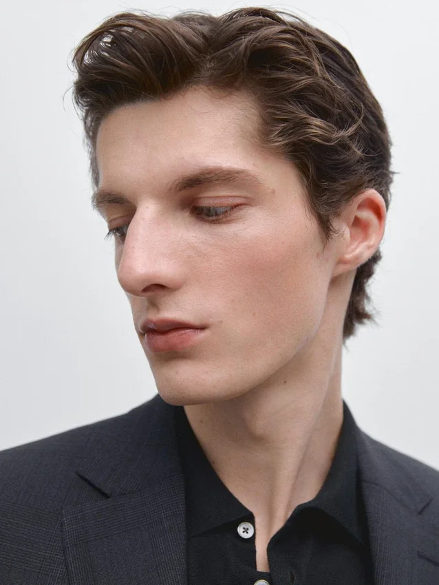 Blazer aus Wollmischung. Reverskragen mit Knopfloch. Lange Ärmel mit geknöpften Manschetten. Zwei-Knopf-Verschluss. Zwei Pattentaschen. Eingesetzte Paspeltasche auf der Brust. Karomuster. Zwei Schlitze hinten. Gefüttert. Cool Wool: Leichtes, atmungsaktives und knitterfreies Gewebe. Dieses Kleidungsstück ist Teil eines Anzugs.