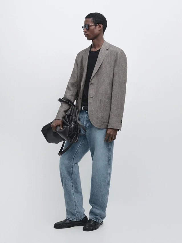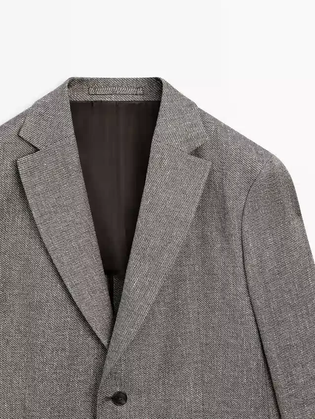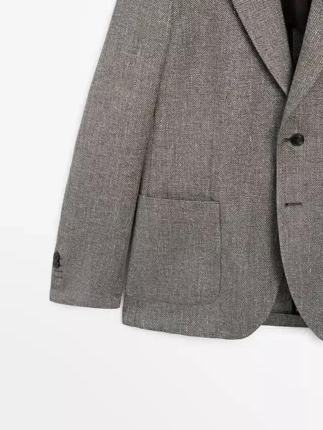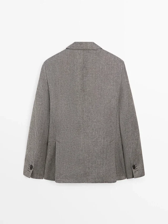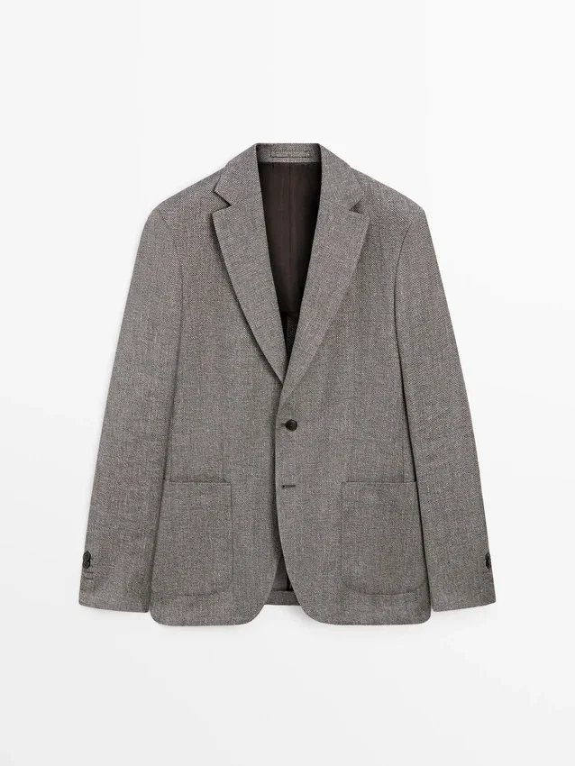 Schreibe die erste Rezension für „Maßgeschneiderter Blazer aus Leinenmischung mit Fischgrätenmuster“