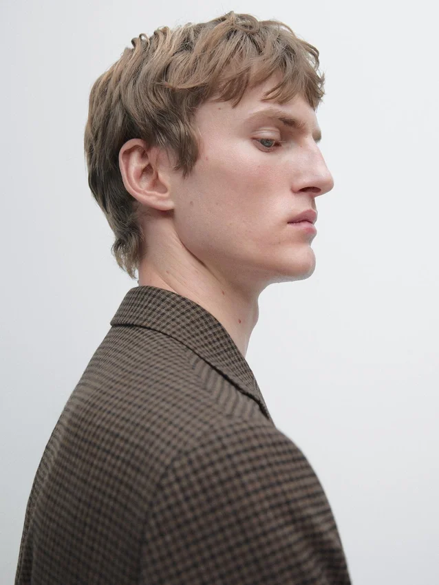 Blazer aus 100 % Wolle als Hauptstoff. Reverskragen. Lange Ärmel mit geknöpften Manschetten. Mikrokaromuster. Zwei-Knopf-Verschluss. Zwei Vordertaschen.