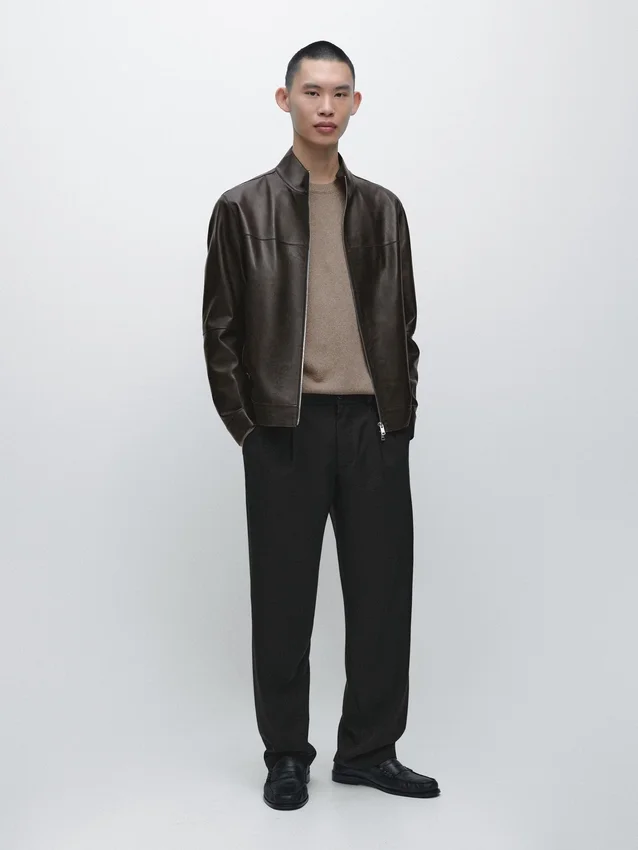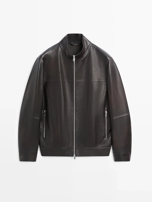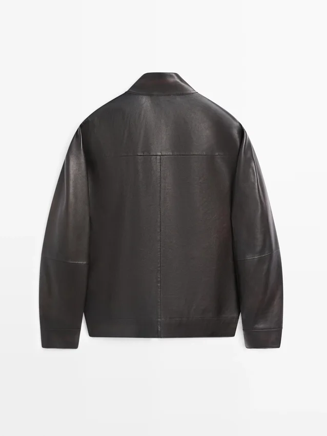 Jacke aus Schafsleder mit Nappa-Finish. Mit Zwei-Wege-Reißverschluss. Hoher Kragen. Zwei Seitentaschen. Nahtdetails.