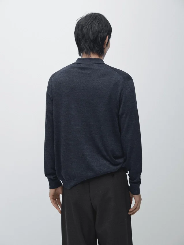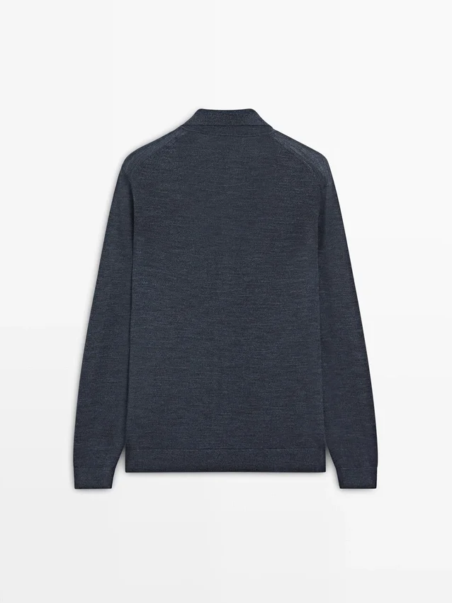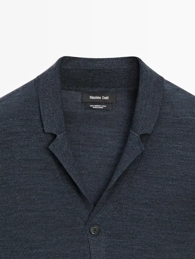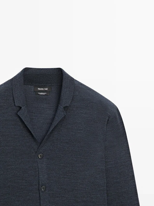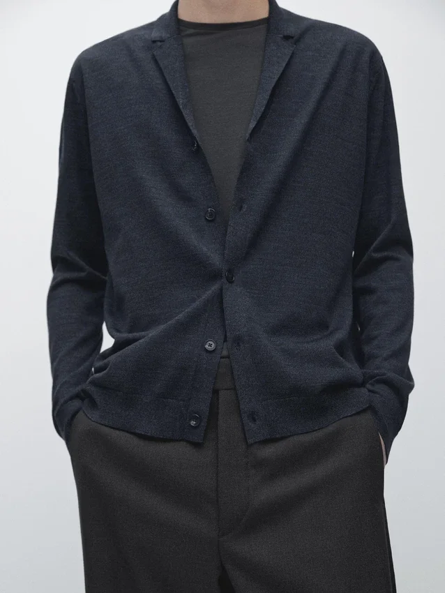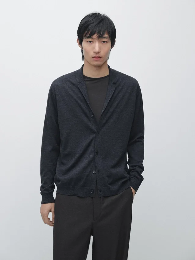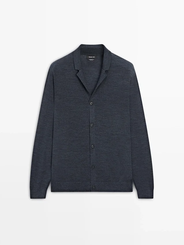 Cardigan aus Wollstrick. Reverskragen. Lange Ärmel. Knopfleiste vorne. Gerippte Bündchen.