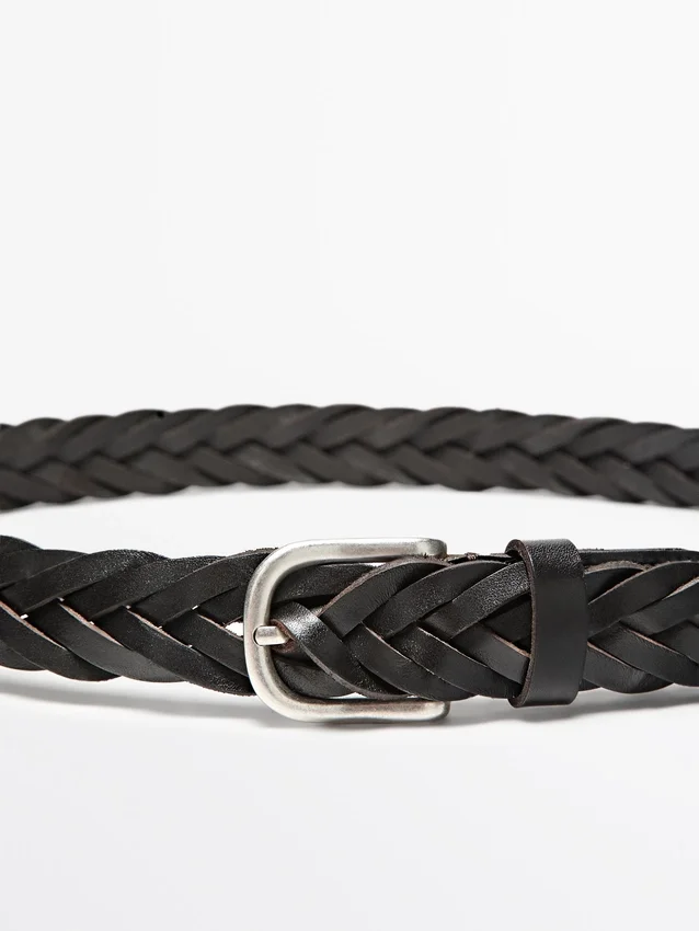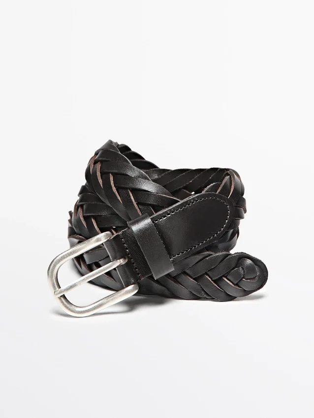 Gürtel aus Rindsleder mit Nappa-Finish. 3 cm breit. Geflochtenes Detail. Verschluss mit Metallschnalle.