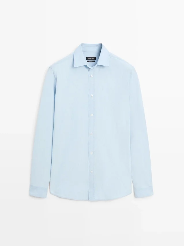 Hemd aus 100 % Baumwollstoff mit Denim-Finish. Lange Ärmel mit geknöpften Manschetten. Hemdkragen. Regular Fit: Diese Passform bietet Komfort mit etwas mehr Platz im Oberkörperbereich. Durchgehende Knopfleiste vorne.
