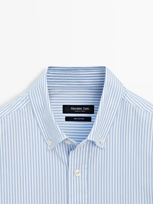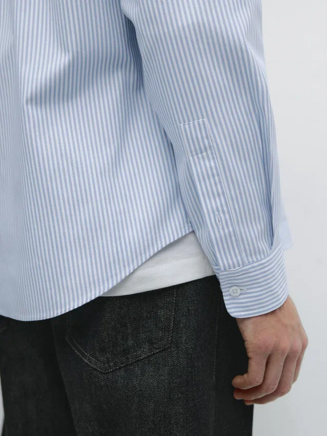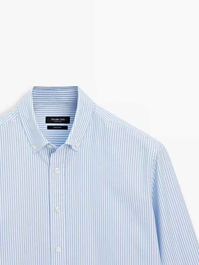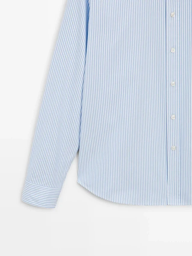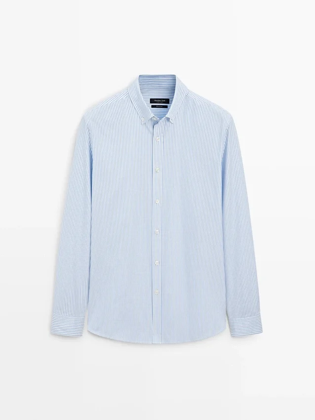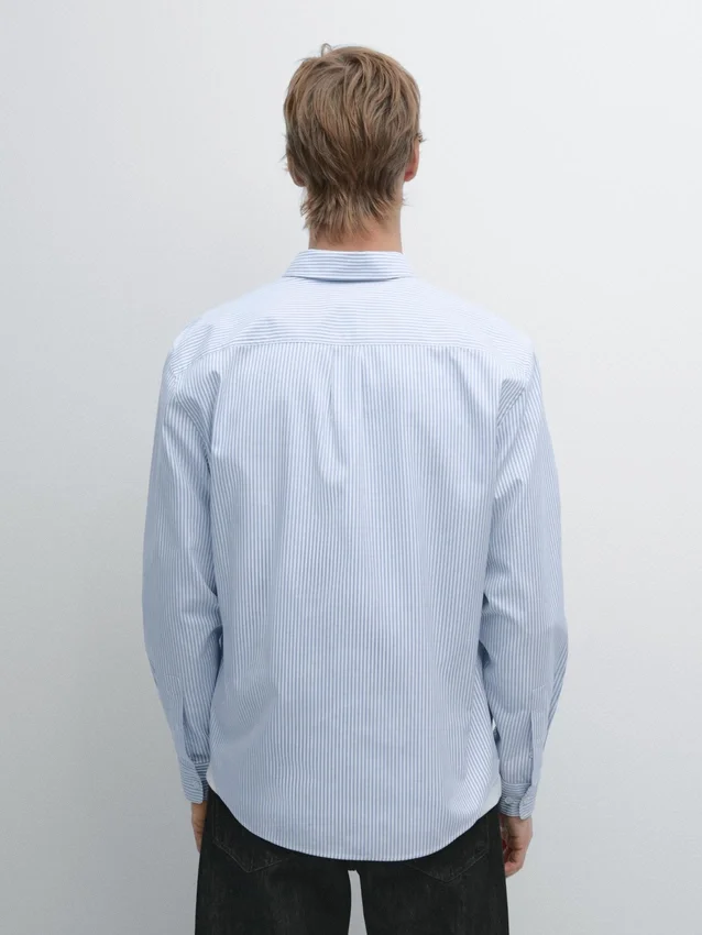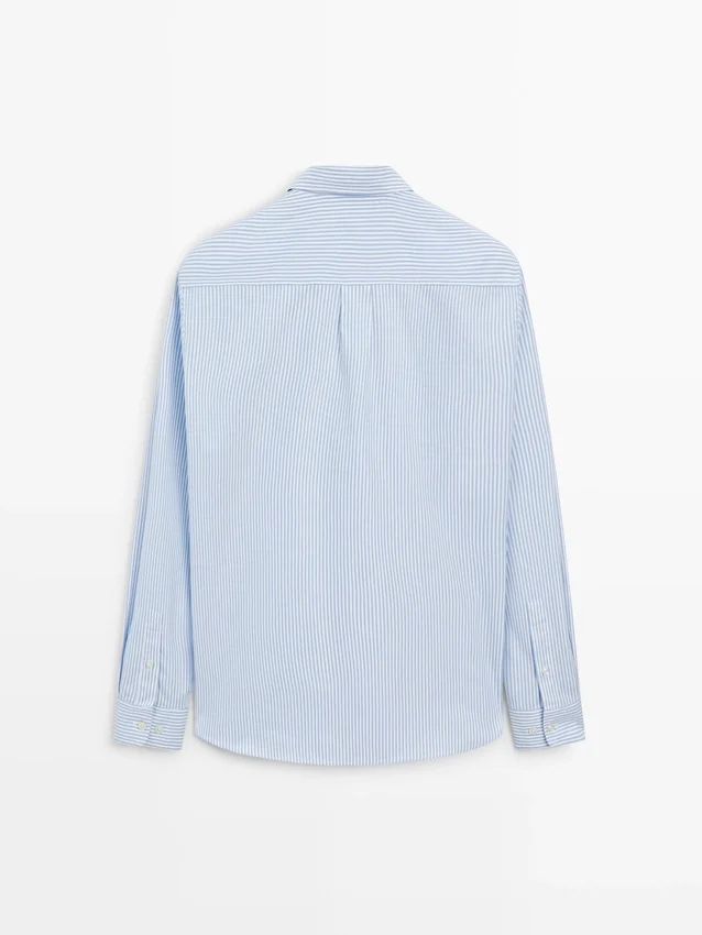 Hemd aus 100 % Baumwollstoff. Lange Ärmel mit geknöpften Manschetten. Hemdkragen. Knopfleiste vorne. Knopfdetail am Kragen. Gestreifter Druck. Oxford-Stoff.