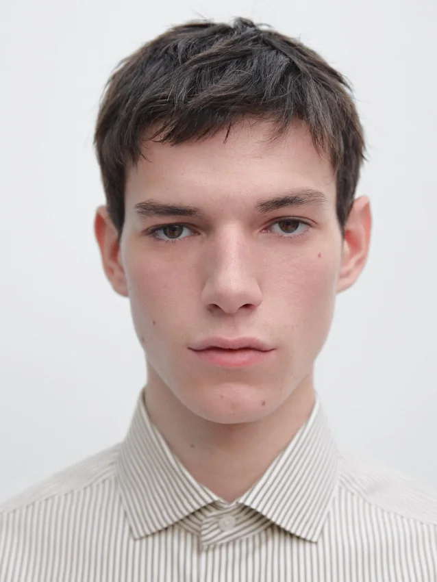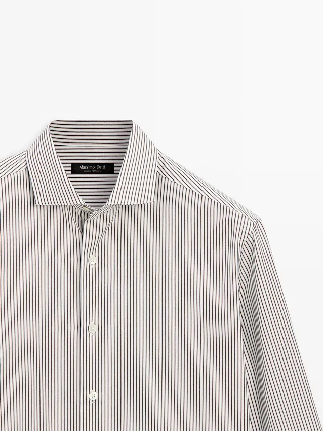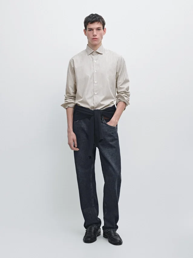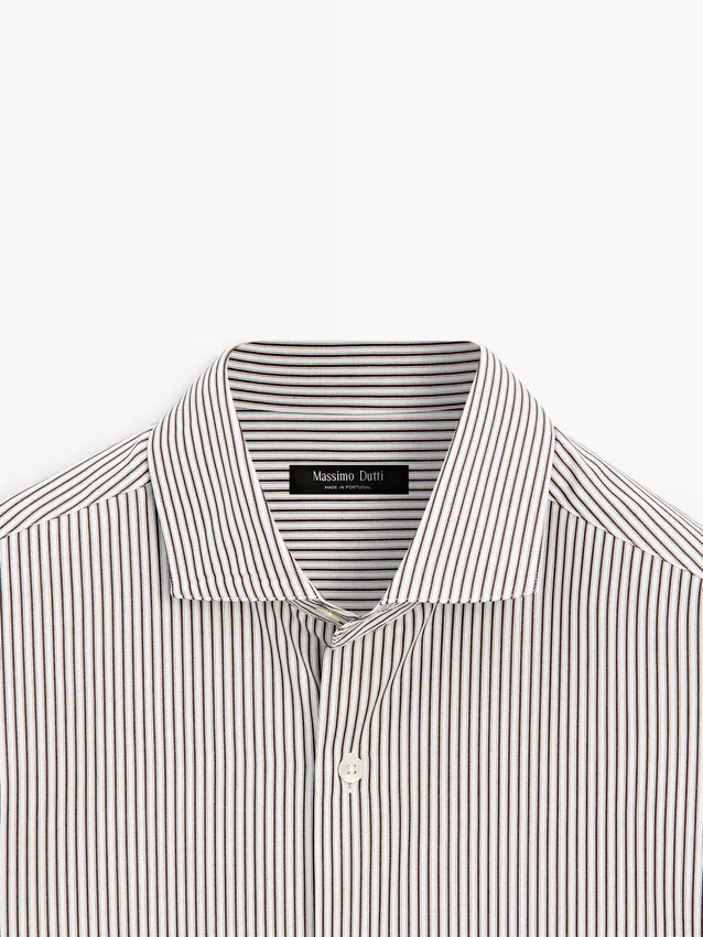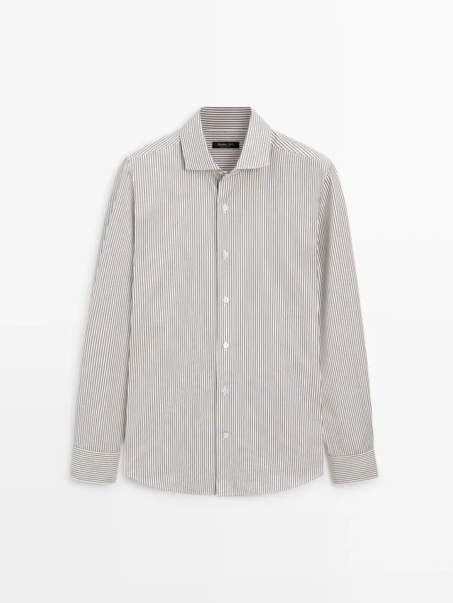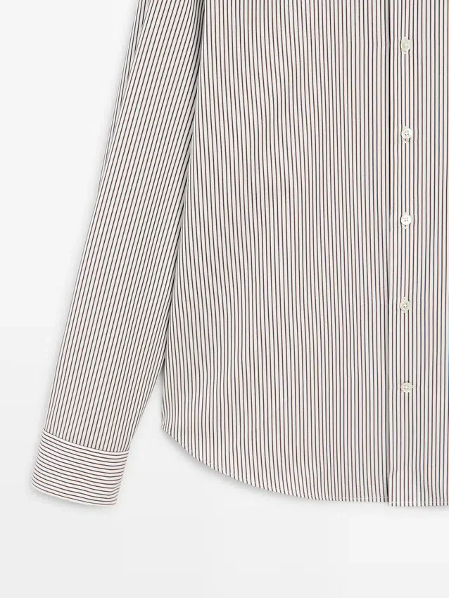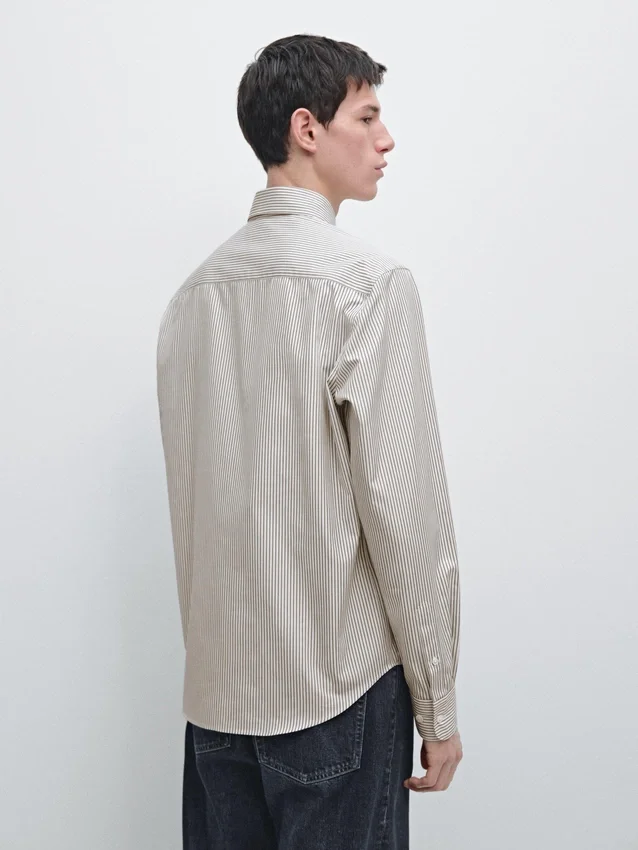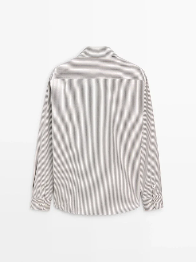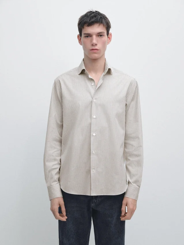 Gestreiftes Hemd aus 100 % Baumwollstoff. Lange Ärmel mit geknöpften Manschetten. Hemdkragen. Lange Ärmel. Knopfleiste.