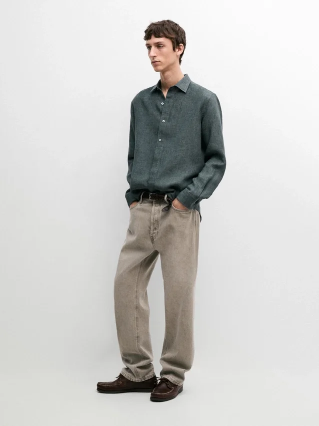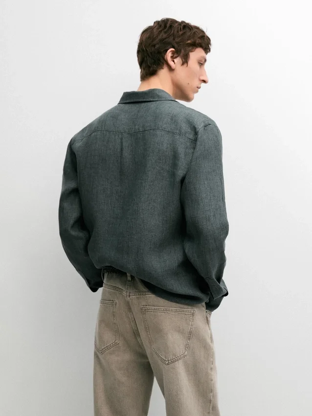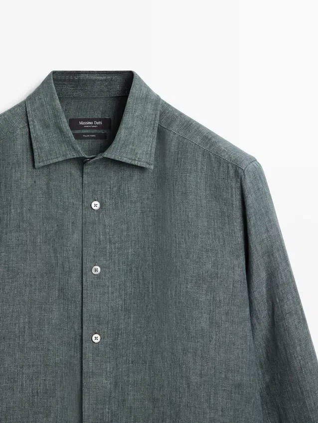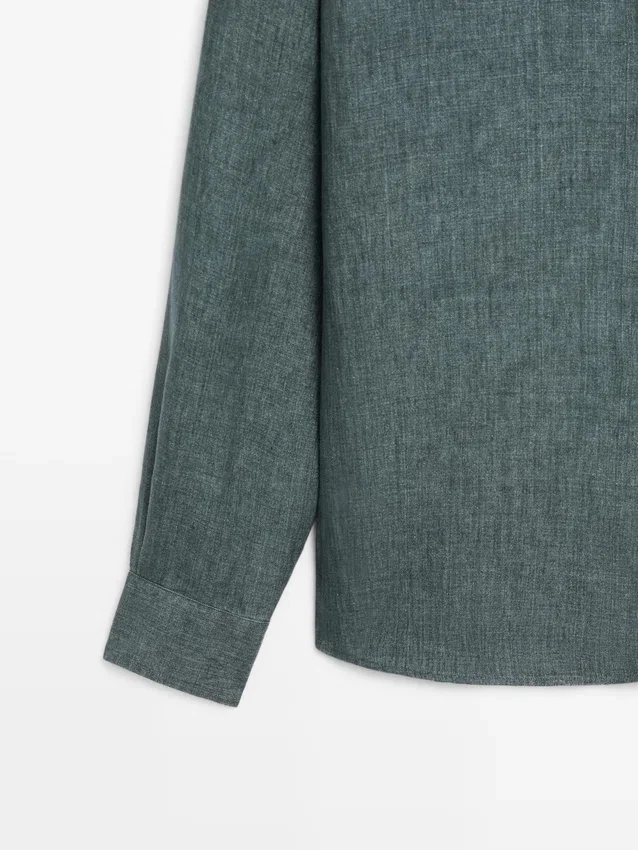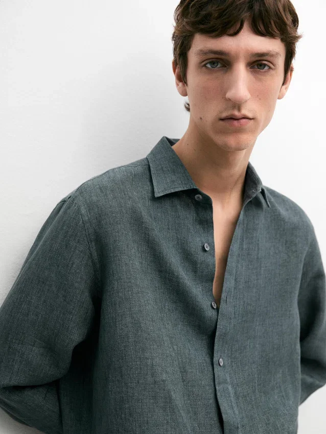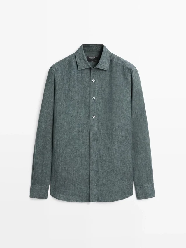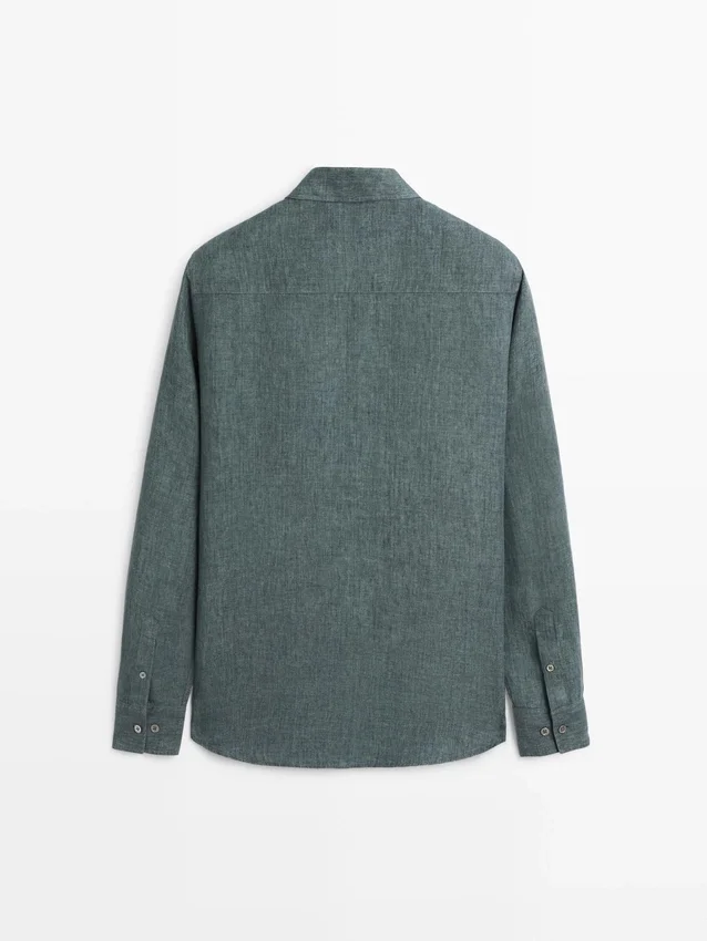Hemd aus 100 % Leinen. Lange Ärmel mit geknöpften Manschetten. Hemdkragen. Feiner, leichter Stoff. Wird mit vier sichtbaren Knöpfen geschlossen, die übrigen sind unter einer Knopfleiste verborgen.