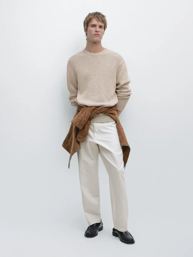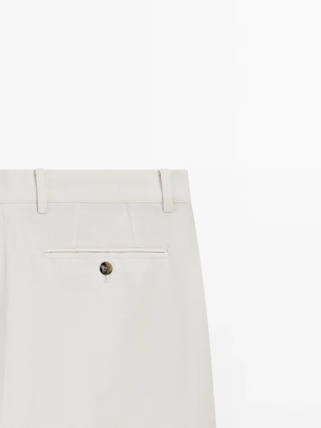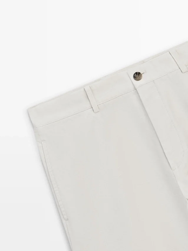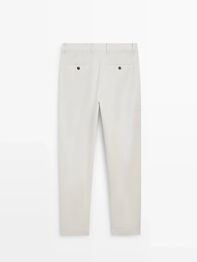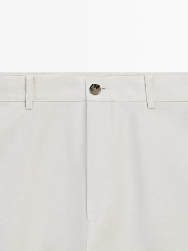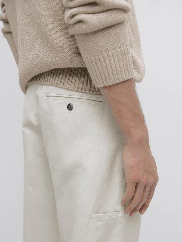 Hosen mit schmal zulaufender Passform: Dieser Schnitt zeichnet sich durch eine lockere Passform an der Taille aus, die sich zu den Knöcheln hin allmählich verjüngt. Hosen aus einem Leinenmischgewebe. Bund mit Gürtelschlaufen. Reißverschluss vorne und Knopfverschluss oben. Seitentasche im Carpenter-Stil.