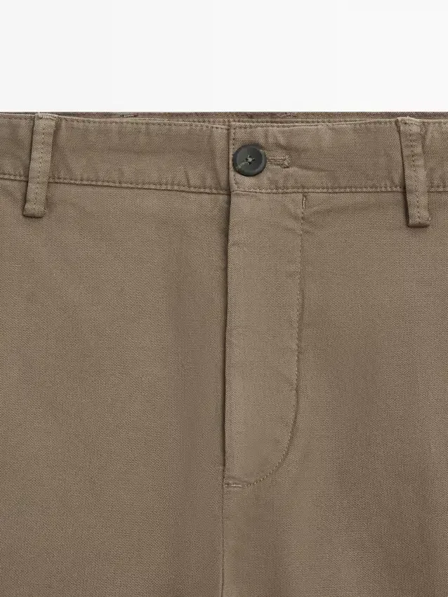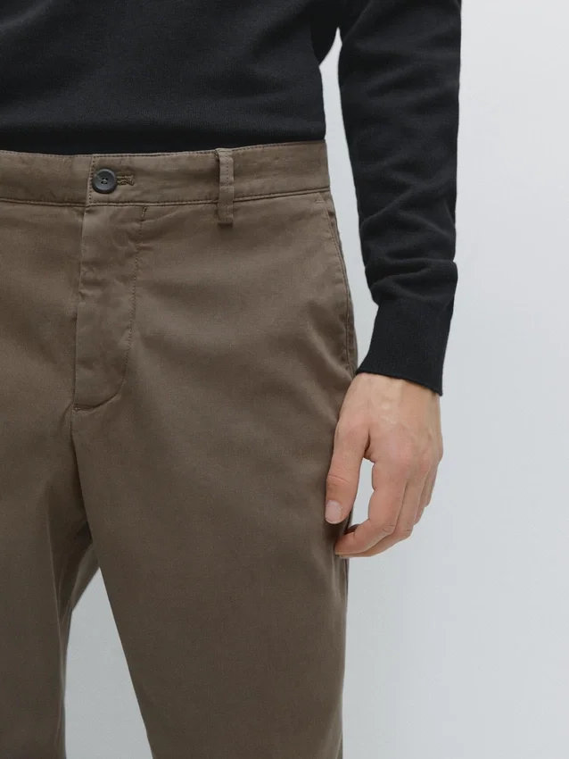 Hose in Slim-Fit-Passform: Diese Passform hat eine leicht taillierte Silhouette, die an Taille und Beinen eng anliegt. Verdeckter Reißverschluss mit Patte, Knopf und Innenknopf. Zwei Seitentaschen. Zwei geknöpfte Paspeltaschen auf der Rückseite. Stoffdetail mit Mikrostruktur.Materialzusammensetzung