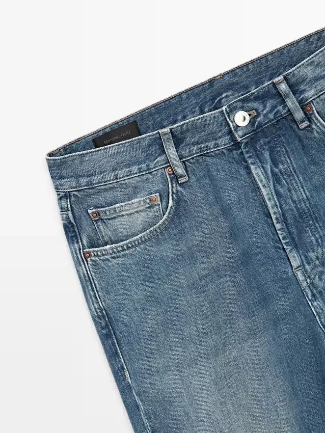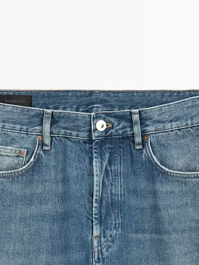 Jeans mit geradem Bein: Gerade Silhouette von der Taille bis zum Knöchel, ohne zusätzliche Beinanpassungen. Bund mit Gürtelschlaufen. Knopfleiste vorne. Fünf-Taschen-Design. Finish im Vintage-Look, das den natürlich gealterten Look von Denim mit Kupferdetails nachbildet. Hergestellt in Italien.