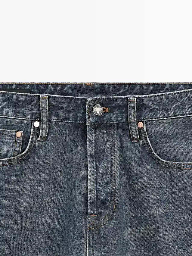 Selvedge-Jeans mit kontrastfarbener Webkante und gerader Außensaum. Fünf-Taschen-Design.Materialzusammensetzung