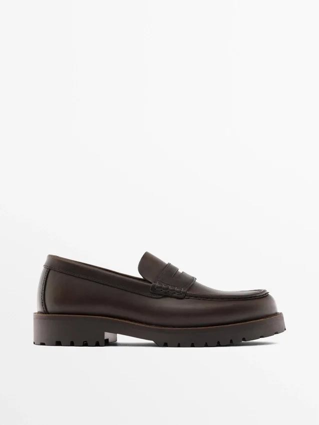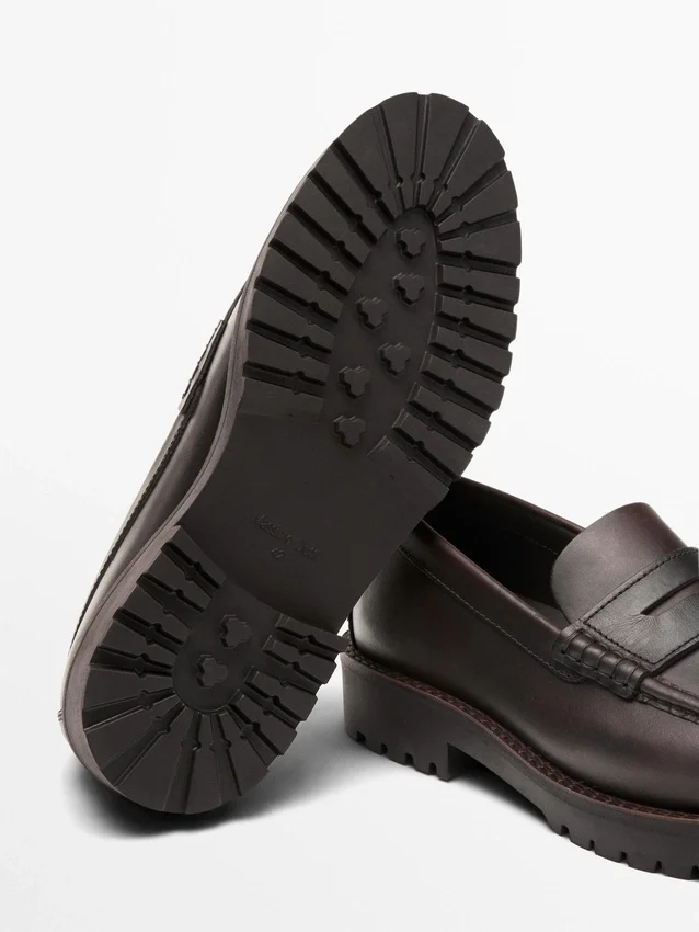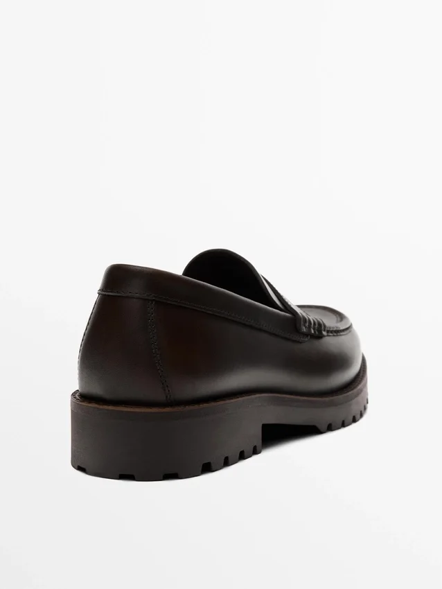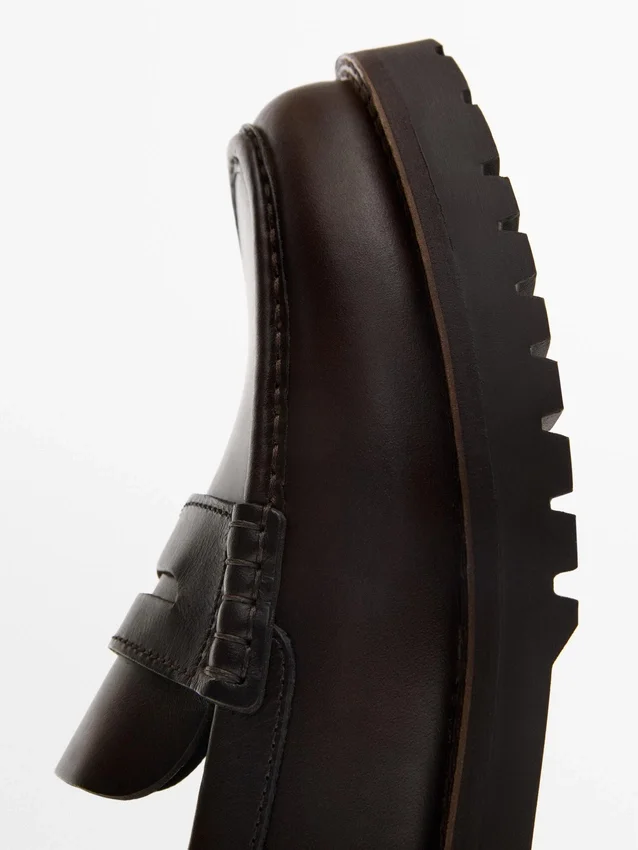 Hergestellt aus Rindsleder. Leicht klobige Sohle. Penny-Riemen. Moc-Toe-Detail. Lederfutter und -innensohle. Hergestellt in Portugal.