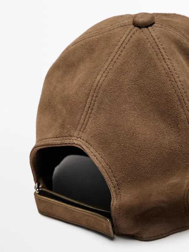 Mütze aus 100 % Ziegenleder mit Wildleder-Finish. Verstellbarer Klettverschluss.